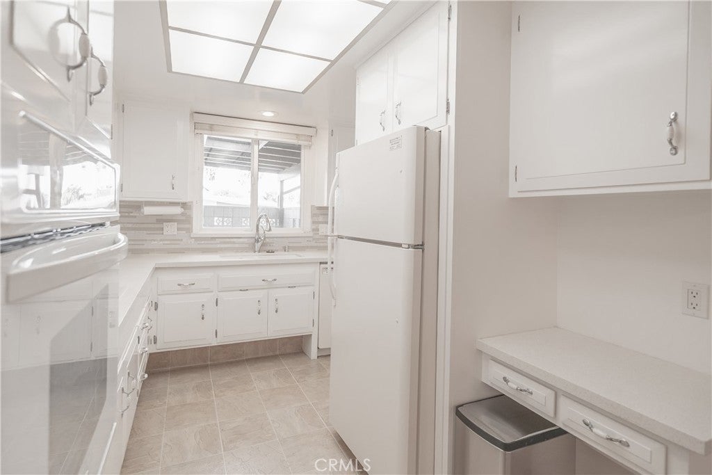 We have a Beautiful two bedroom, one bath unit in Mutual 15, new on the market! Open, bright and spacious with vaulted ceiling! This is an atrium unit that has been enclosed with a skylight that brings in natural light and an area in the home to use for an office or sitting area! The upgraded kitchen features glass mosaic tiles, beautiful counters and glass cooktop. Two spacious bedrooms with built in cabinets for extra storage. Large upgraded bath with dual sinks and shower with adjustable shower head and built in bench/seat. Laundry hook-ups(full size washer and dryer) are conveniently located in its own enclosure on the patio! Covered Parking space 14 also has a big storage cabinet a short distance from the front door! Leisure World residents have so many amenities: 9 Hole Golf Course, Swimming Pool, Jacuzzi, Gym, Table Tennis, Shuffleboard, Billiards, Pickle Ball and Bocce Ball courts. Amphitheater, 6 Club houses featuring: Exercise Gym, Art Room, Sewing, Crafts, Woodshops, Lapidary, Pool tables; Over 200 Clubs, LWSB is a Security-Guard-Gated Community. Also, Library, Friends of Library Bookstore, Credit Union, Health Care Center, (Pharmacy), and Post Office.