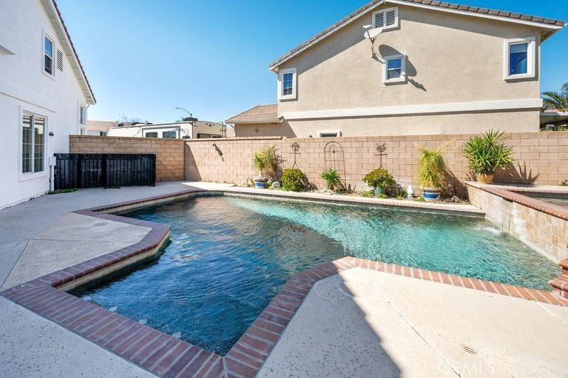 Beautiful two-story home located in a desirable community in Fontana. This spacious residence features 5 bedrooms and 3 bathrooms, including one bedroom and one full bathroom conveniently located on the main floor. The home offers a bright living room with high ceilings, a comfortable family room, and a kitchen with a center island ideal for cooking and entertaining. Enjoy outdoor living with a private backyard featuring sparkling swimming pool and covered patio, perfect for relaxing or hosting gatherings. Additional highlights include a billiard room for entertainment, a 3-car attached garage, and a cul-de-sac location that offers added privacy and minimal traffic. The property also includes leased solar panels to help with energy efficiency. Located in a nice and established community close to shopping, schools, and major commuter routes.