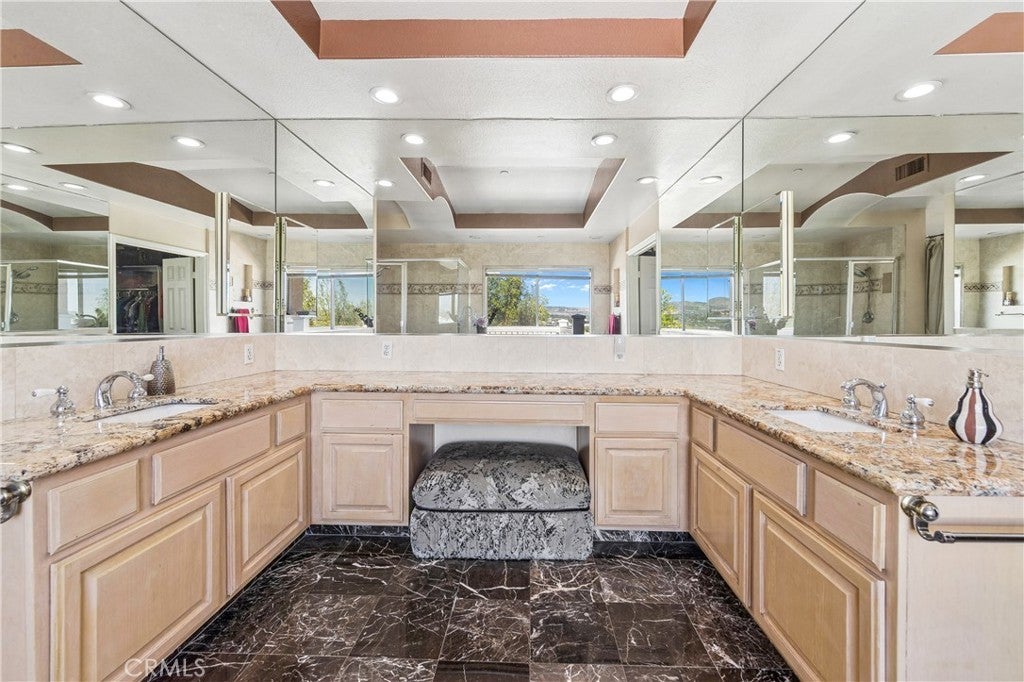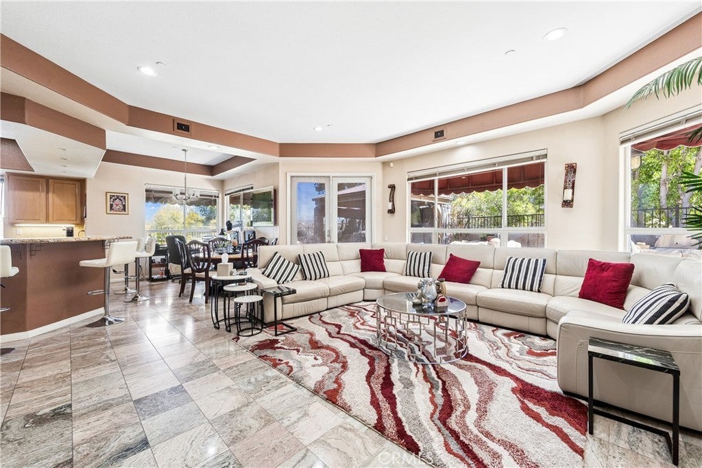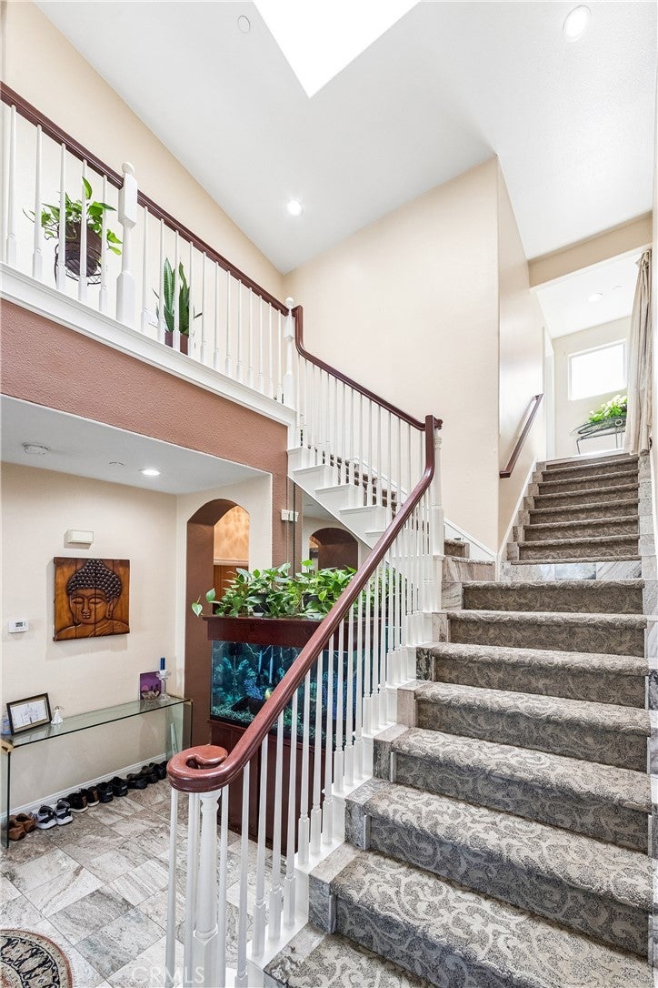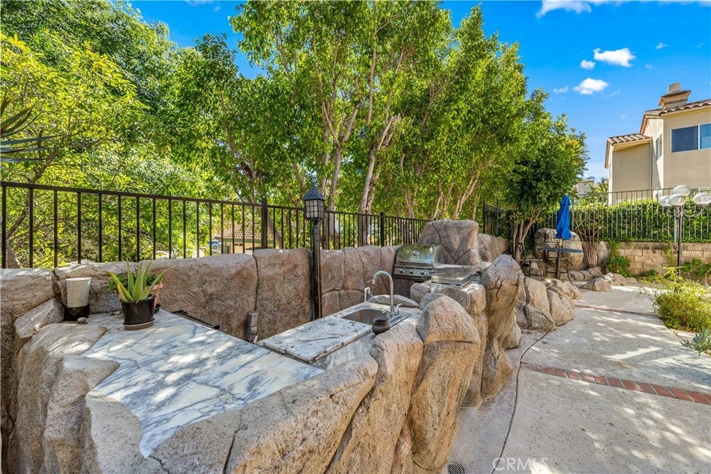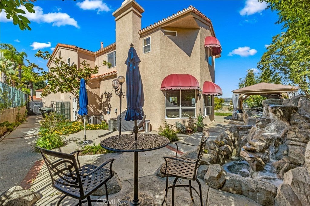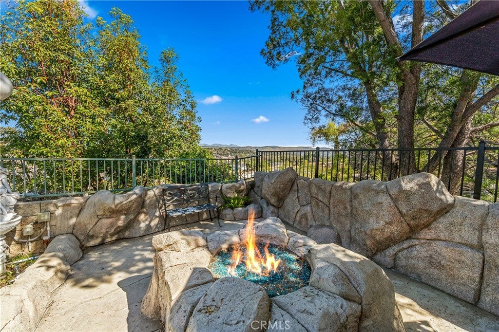 Perched atop one of Anaheim Hills’ most prestigious gated enclaves, this amazing residence sits on a sprawling corner lot at the end of a quiet cul-de-sac, offering privacy and sweeping panoramic views. Soaring ceilings and walls of windows bathe the interiors in natural light, while double doors throughout create seamless connections to the meticulously landscaped grounds, crafting a perfect canvas for entertaining. The formal sitting area, anchored by a warming fireplace, flows effortlessly into the formal dining room, which opens to the backyard—ideal for sophisticated indoor-outdoor entertaining. For more casual gatherings, a second dining area opens to the spacious kitchen and expansive family room warmed by an additional fireplace, creating an inviting space for everyday living. The guest powder room on the main level ensures convenience for visitors. Upstairs, four generous bedroom suites, each with its own luxurious en-suite bathroom, provide comfort and privacy for family and guests. The primary suite is a serene retreat, complete with its own fireplace, a sprawling walk-in closet, and a private patio deck that frames stunning sunset vistas—perfect for morning coffee or evening relaxation. Outside, sculptural rock formations and cascading waterfalls create a tranquil, resort-like atmosphere, brought to life after dark by expertly designed landscape lighting. Multiple outdoor entertaining spaces—including fire pits, a built-in barbecue, and a shaded pergola—invite alfresco dining and gatherings against the backdrop of rolling hillside views. A three-car garage provides ample storage, complemented by a spacious driveway for multiple vehicles. Central heat and air throughout ensure year-round comfort. Ideally located near top-rated schools, scenic parks, shopping, and convenient freeway access, this home perfectly blends tranquility, luxury, and connectivity, offering a rare opportunity for resort-inspired living in Anaheim Hills.