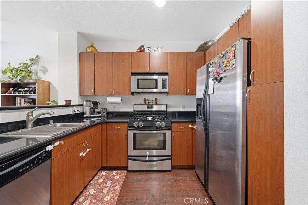 Steps from the Action—Resort Living in the Heart of the Platinum Triangle. Experience the ultimate urban lifestyle at the renowned Stadium Lofts! This stylish residence (#2096) offers a perfect blend of modern comfort and high-energy convenience. Conveniently located near Angel Stadium, the Honda Center, and the world-class OC VIBE entertainment district, you are at the epicenter of Orange County’s most vibrant neighborhood. This meticulously maintained unit offers 728 sq. ft. of smart living space, featuring beautiful wood-style flooring, recessed lighting, and a modern kitchen with a breakfast bar. This home is move in ready with key features such as in-unit laundry, central A/C and heat. Recently upgraded with high-efficiency tankless water heater. The unit is on the corner so it only shares one wall. The bedroom has access to the balcony. It also comes with one assigned parking in a secured garage. HOA dues include high-speed internet (this is rare), water, and trash. Desirable interior-facing position offers a peaceful retreat with courtyard views. Residents enjoy top-tier gym, pool/spa, a clubhouse and lush courtyards with BBQ grill and fire pits to entertain. Proximity to the ARTIC transportation hub and major freeways (5, 57, and 22) makes any commute a breeze! Don't miss your chance to own in the heart of Anaheim!