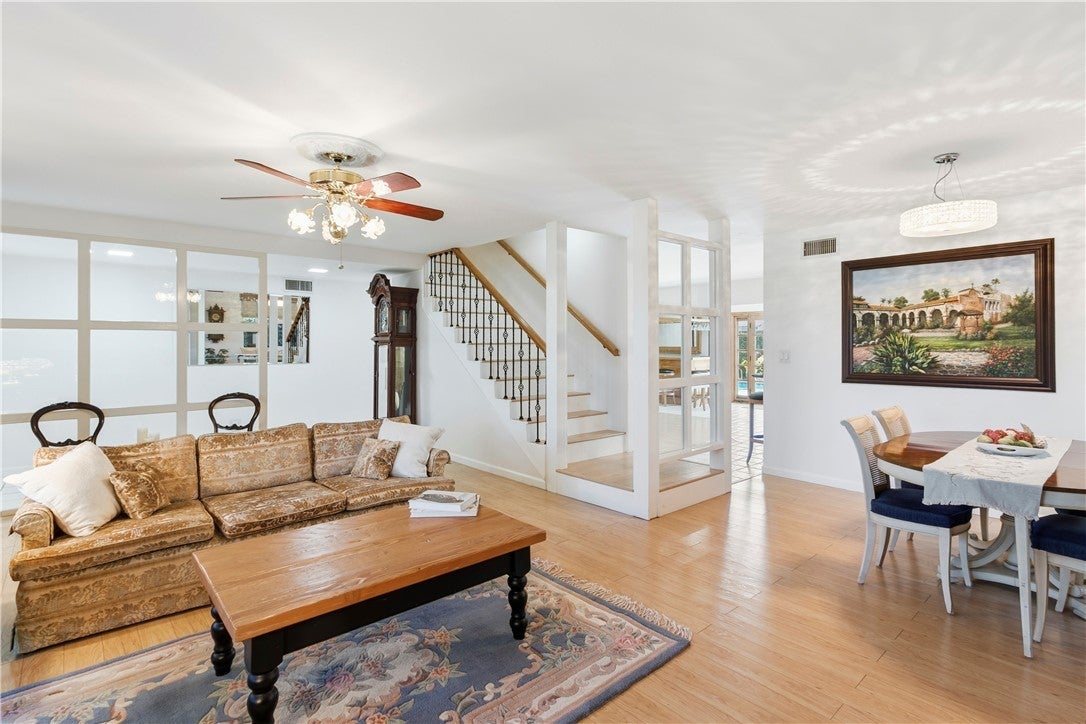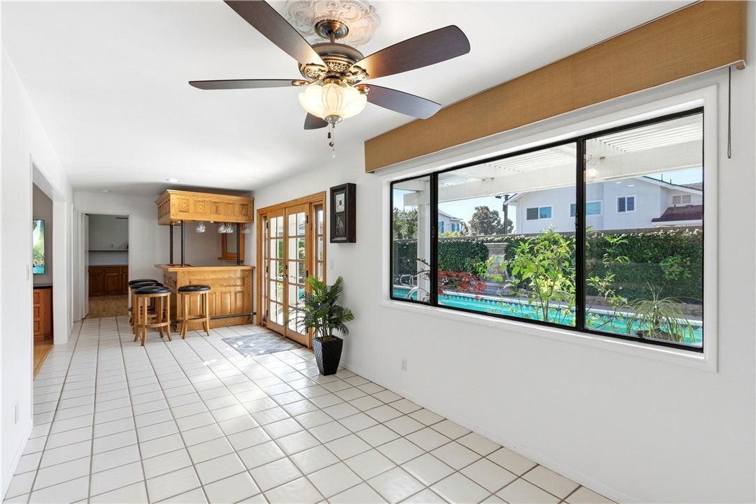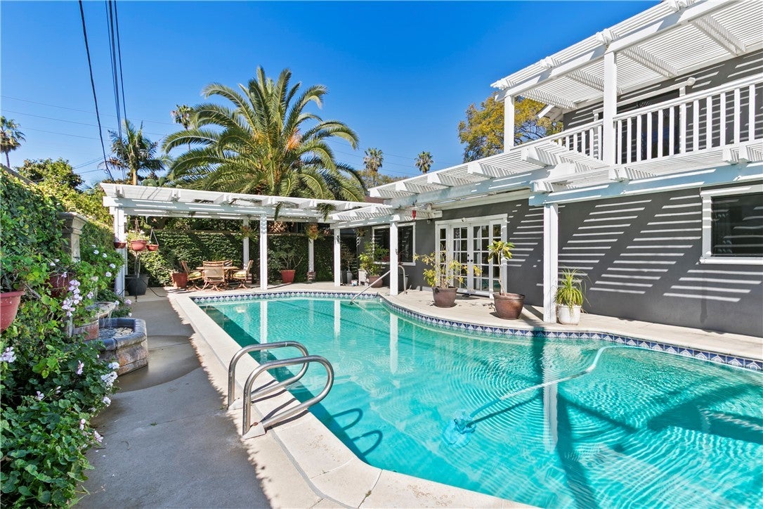 Absolutely gorgeous 2-story pool home with solar in the coveted "Maybury Park" neighborhood of Santa Ana. Located in a cul-de-sac with an extra-wide driveway and possible RV parking, this home boasts a beautiful curb appeal and a functional floor plan. Attractive features of this thougtfully upgraded and lovingly maintained home include the following: Composition roof, formal living room with fireplace, custom window treatments, formal dining area, separate family room, upgraded Chef's kitchen with granite countertops and top of the line stainless steel appliances including a 6 burner Thermidor cooktop and oven, bonus room with bar area and French doors leading to the backyard, 1 bedroom downstairs, additional den/office downstairs, spacious primary bedroom with updated walk-in shower and vanity, 2 additional bedrooms upstairs with access to a large balcony/ sundeck, new (2025) forced air heating, central air conditioning & water heater, 2 skylights in kitchen and upstairs hallway bath (2024), ceiling fans throughout, sparkling pool, backyard perfect for entertaiing, updated pool heater and equipment (2022), finished attic for storage, fully finished garage with builtin storage cabinets, side by side laundry (washer & dryer included) area in garage, storage sheds in the sideyard, popular Tustin Unified School District, and location convenient to restaurants, shopping and freeways. Don't miss out!
