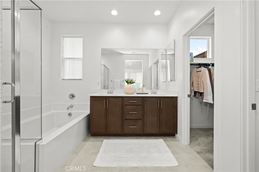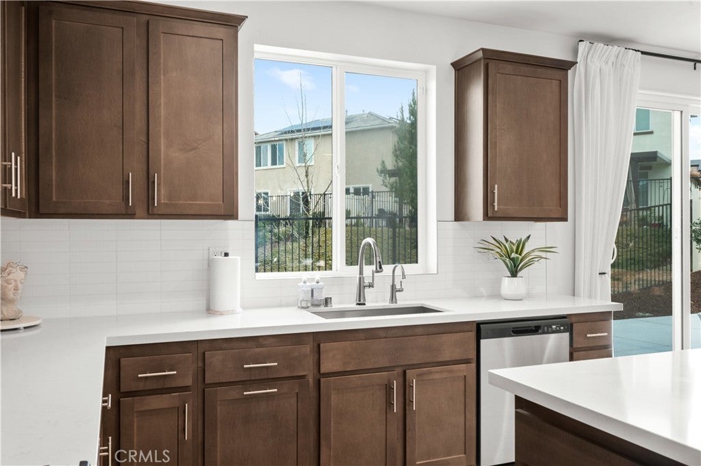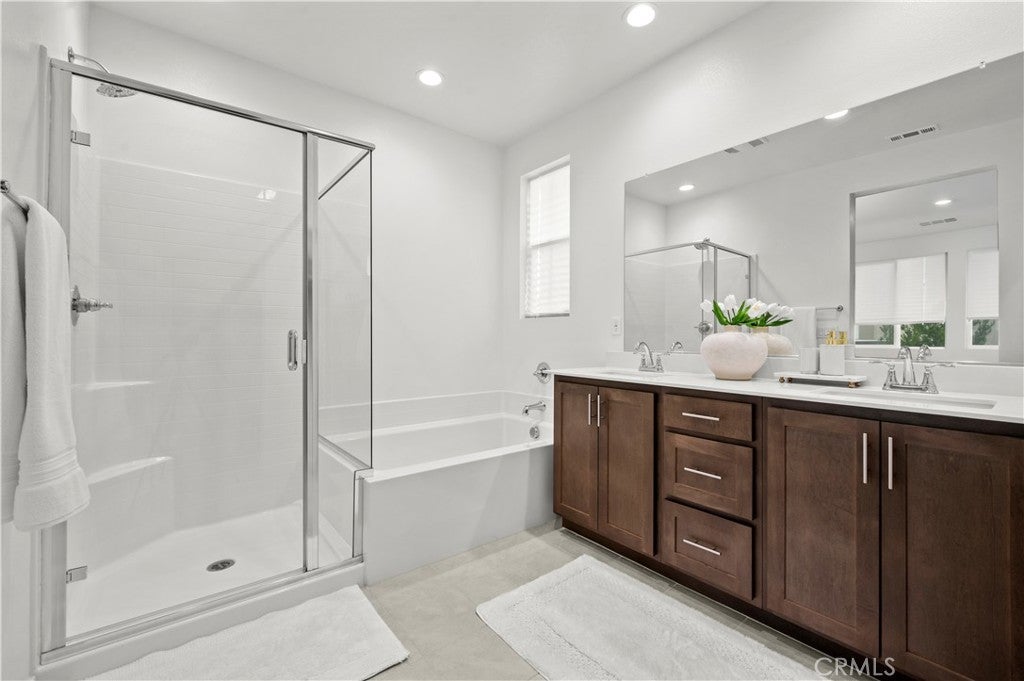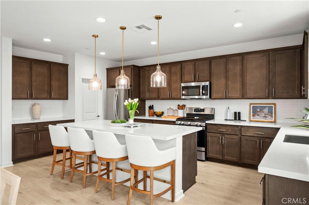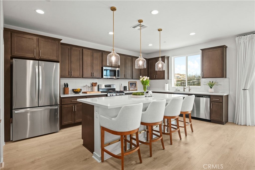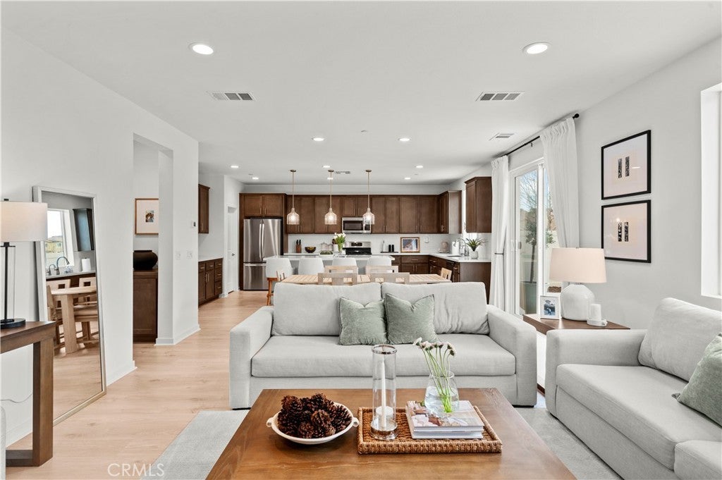 Tucked away in a private cul-de-sac within the highly sought-after Fairway Canyon community in Beaumont, this 2023-built residence offers an exceptional blend of modern elegance, comfort, and scenic surroundings. The property is fully landscaped, creating a polished outdoor environment that enhances both curb appeal and everyday enjoyment. Designed with a sophisticated open-concept layout, the home features approximately 2,362 sq ft of thoughtfully planned living space with 4 bedrooms and 3 bathrooms. The main level offers a convenient bedroom and full bath, ideal for guests, multi-generational living, or a private office. The expansive living area flows seamlessly into the kitchen and dining space, complemented by a spacious walk-in pantry that adds both style and functionality. Upstairs, the luxurious primary suite serves as a peaceful retreat, featuring dual walk-in closets and generous space designed for relaxation. Additional bedrooms are well-proportioned, while partial mountain and golf course views enhance the serene atmosphere of the home. Residents of Fairway Canyon enjoy a well-maintained HOA that includes high-speed internet and access to resort-style amenities, including a community pool, fitness center, clubhouse, meeting and conference rooms, parks, and recreational spaces. Ideally located near shopping, dining, schools, and convenient freeway access, this home presents a rare opportunity to experience refined living in a beautifully maintained, cul-de-sac setting.