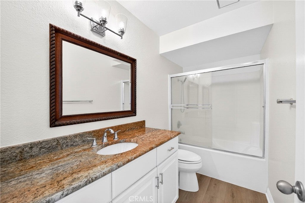 Charming two-story home located in a desirable gated community in Whittier. This bright and well-maintained residence offers 3 bedrooms and 3 full bathrooms with approximately 1,856 sq.ft. of living space. Fresh interior paint and new wood-like laminate flooring create a clean, modern feel throughout. The sun-filled kitchen features marble tile countertops, refreshed white cabinets, recessed lighting, and multiple windows that bring in abundant natural light and views of the backyard. The adjacent family room opens through sliding glass doors to a private, easy-maintenance backyard, perfect for relaxing and enjoying outdoor space. The flexible layout includes two versatile downstairs rooms ideal for office, guest, or hobby space, while upstairs offers a spacious primary suite with walk-in closet and full bath. Secondary bedrooms share a Jack-and-Jill bathroom. Additional highlights include Spanish tile roof, new blinds, attached 2-car garage, and indoor laundry area. Don’t miss the opportunity to make this welcoming home your own!!