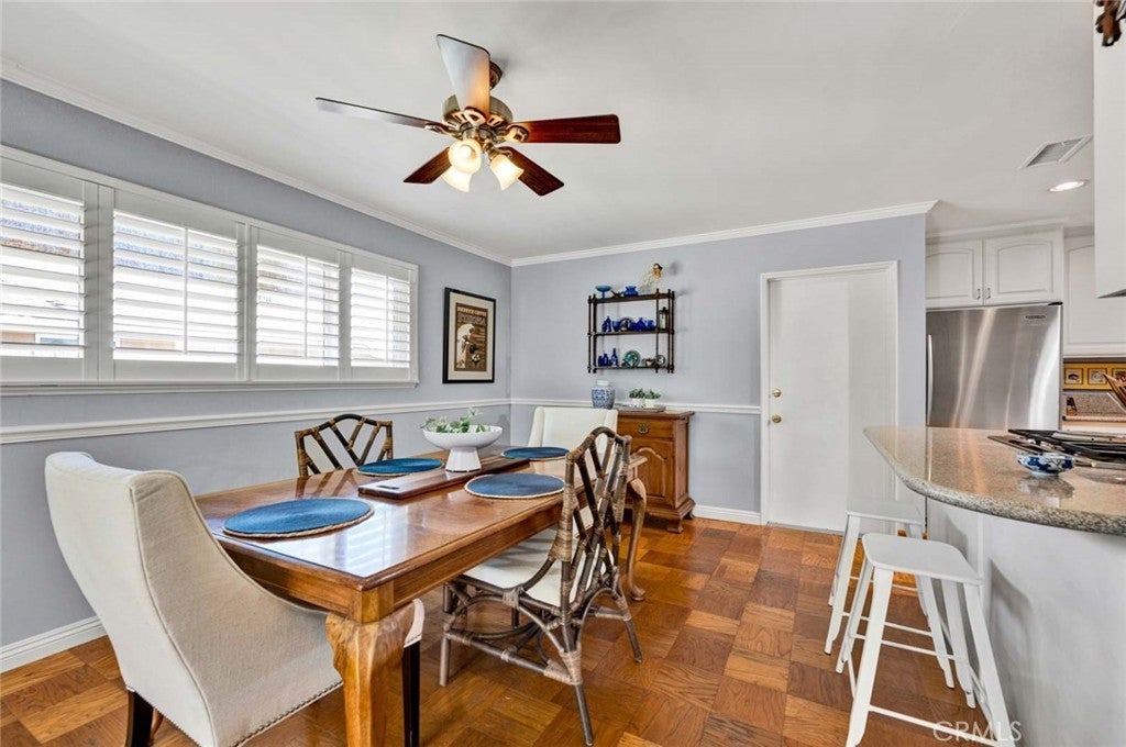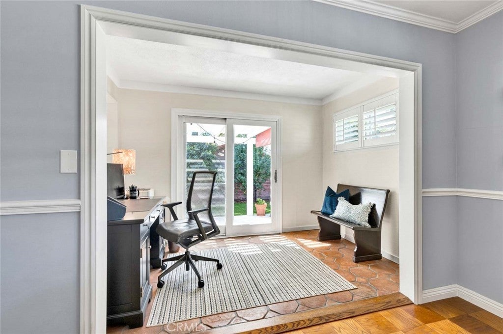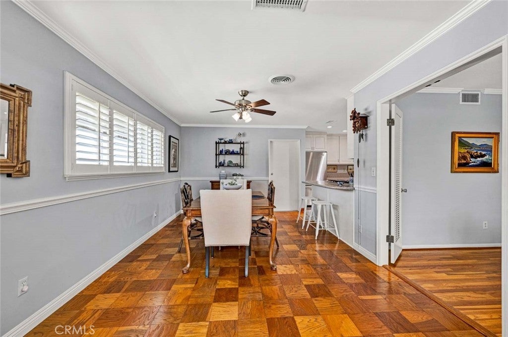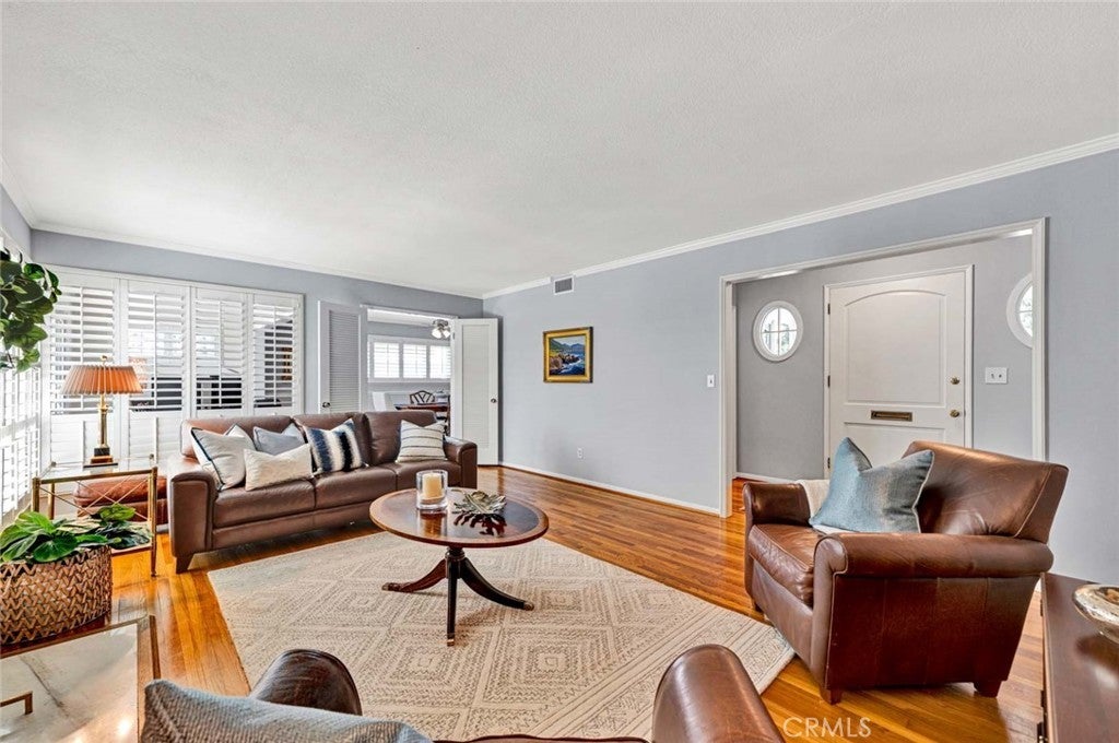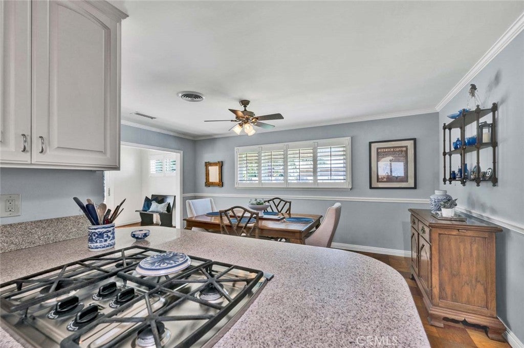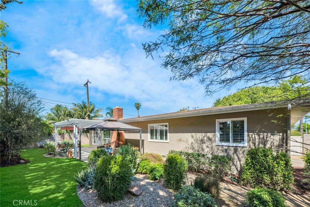 Beautifully maintained and upgraded single level home in the "heart of Tustin" features 3 large bedrooms and two remodeled baths + an office nook, and a bright, remodeled kitchen. Freshly painted exterior, hardwood flooring and newer systems, including HVAC & ducts, 200 amp electrical panel and EV charging unit. One-quarter acre corner lot offers plenty of room to show off your gardening skills cultivating fruit trees and specimen shrubs, while the newly installed artificial turf yard is low maintenance. A large patio area offers space to enjoy outside dining under the gazebo (wood table, chairs & bench are included) or simply relax. This quiet neighborhood is ideal for strolls along tree lined streets, or choose to watch the world go by from your inviting covered front porch. Dual and triple pane windows with plantation shutters and handsome crown molding are found throughout the home. This property is conveniently situated for shopping and dining, proximity to Old Town Tustin activities and the yearly Tustin Tiller Days festivities. Located within the boundaries of Foothill High. No Mello Roos or HOA fees!