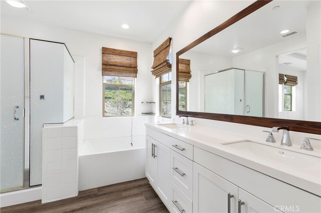 Welcome home to this wonderfully upgraded corner unit 3 bedroom, 2 1/2 bath home with nobody behind you. Step right in and immediately notice the great open floor plan highlighted with updated laminate flooring, new paint throughout, custom window coverings and quartz countertops in the kitchen. The kitchen area offers a lovely island to entertain around with plenty of storage in the white shaker style cabinets highlighted with stainless steel appliances and glass backsplash. Step out into your private easy to maintain patio perfect for entertaining and enjoying the indoor/ outdoor California lifestyle. Upstairs you will find the large primary bedroom with on suite bathroom boasting a dual vanity with quartz countertops, walk in closet, soaking tub, step in shower, private toilet area and great views from all the windows. The two additional bedrooms are a great size and share a private Jack and Jill bathroom. Enjoy the laundry area complete with a soaking sink and located upstairs for easy access. Garage area offers a generous amount of storage and epoxy flooring with an energy rated tank-less water heater. Enjoy everything this home has to offer including the wonderful Rancho Mission Viejo Lifestyle which includes award winning schools, the Rancho Cove community pool and gym, The Ranch Camp, countless recreational activities, countless resort style pools and spas, fitness centers, putting greens, pickle ball courts, playgrounds, arcade area, sports courts, you name it!! This is a MUST SEE!!!