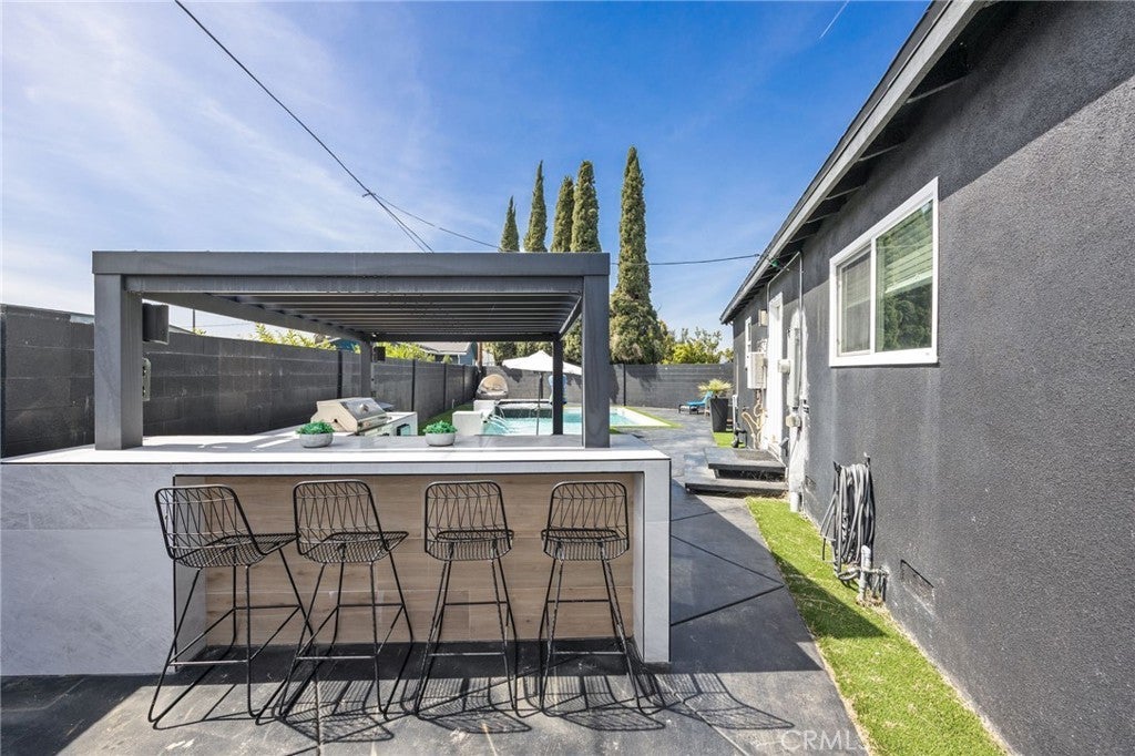 Entertainers Delight, Highly upgraded pool home located on cul-de-sac street. Outstanding features Include: Absolutely beautiful backyard that includes gorgeous pool and spa, pool equipment is Jandy pro series which can be run through your phone with custom lighting, backyard is south facing, built in Bar-b-que, refrigerator, Fire pit, covered patio, block wall fencing on all 3 sides, vinyl gates on both sides of property, backyard also has large undeveloped are to east side of backyard that could be used for storage, pickle ball court, putting greens, concrete driveway that could accommodate smaller r v vehicles, interior feature of home include: Nest system central air conditioning, tankless water heater, Remodeled kitchen includes: ample storage that includes pantry, 5 burner gas stove, dishwasher, both bathrooms have been re-modeled, large primary bedroom, all bedroom and bathroom doors are 6 panel, recessed lighting in living room, double paned windows, doubled attached garage has been finished with drywall and epoxy floors, surround sound speakers, custom roll system garage door, upgraded electrical service, Everything is done just move-in and hang your hat!! all the big ticket items are in and paid for, seller also has plans for 405 ft. room addition, all you have to do is make the personal changes that makes it your home!!!