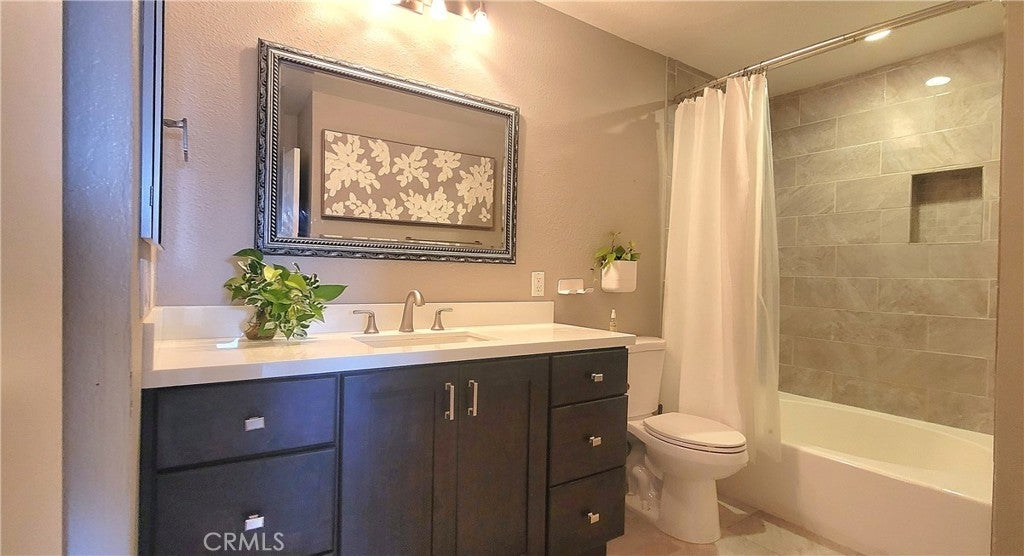 Welcome to Newman Terrace! A beauty two bedrooms,two bathrooms condo located on the first level in the quite gated community.Gorgeous property offers over 1,200 square feet of living space with Vinyl flooring,Baseboards,Crown molding,Smooth ceilings,Recessed lighting. The spaces living room easily accommodates with large sectional. A lovely fireplace will bright up your living room. The open kitchen dinning area and breakfast bar looks over the dinning area. Two bedrooms opens to private patio. Upgraded bathrooms. The master bathroom has an additional closet. A private community provides a gated pool, spa, as well as tennis court and beautiful maintained landscaping. A private gated parking;2 parking spaces and cabinets. Close to shopping centers,Restaurants,Markets,Freeways, Entertaining,Beaches and more...
