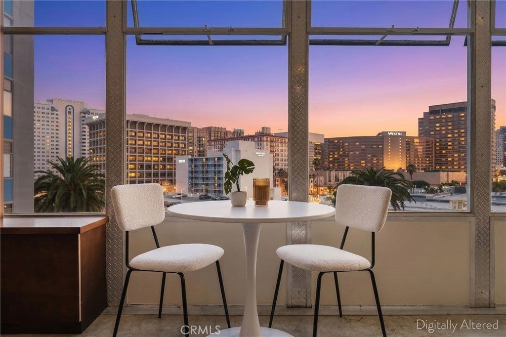 If you are looking for a hip, artsy loft vibe with epic views just a couple blocks from the beach this is IT! The unit is located on the 6th floor with sprawling city views from the kitchen and palm tree tops right outside the bedroom windows. The Royal Palms has an impressive secure entrance right off Atlantic with facial recognition and double fob entrance, courtyard and modern lobby. Jump in the elevator and find yourself entering a southwest facing corner unit with wall to wall glass overlooking the city. Fisher & Paykel appliances, polished concrete floors and a beautifully remodeled bathroom. Belly up to the bar stools and watch the sunset and enjoy this open loft concept. Parking is available directly across the street and paid for by the seller for the whole first year of ownership. Cool off in the pool and catch some rays in one of the outdoor seating areas. This building is very pet friendly and so are the residents!