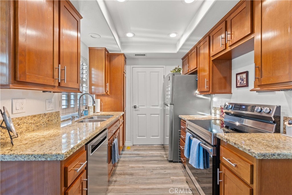 Buyer cancelled, just changed their mind. Welcome to this stunning, turnkey condominium nestled in the highly sought-after Briarcliff Village gated community, perfectly positioned in one of the best locations with no one above or below, attached on only one side offering added privacy. This light-filled home showcases pride of ownership throughout, featuring dual-pane windows adorned with elegant shutters, and beautiful laminate flooring that flows seamlessly through most of the home. The thoughtfully designed kitchen boasts rich wood cabinetry, granite countertops, stainless steel appliances, recessed lighting, and a charming window overlooking the lush private patio. Enjoy the convenience of direct garage access. Adjacent to the kitchen, the dining area opens via sliding doors to a serene outdoor retreat complete with vibrant flowers and low-maintenance artificial grass, ideal for relaxing or entertaining. The spacious living room is enhanced with crown molding and tall baseboards, creating a refined yet comfortable atmosphere. A stylishly updated powder room is conveniently located on the main level. Upstairs, both bedrooms feature crown molding, high baseboards, ceiling fans, and walk-in closets. The primary suite is a true sanctuary, highlighted by a fully renovated bathroom with a luxurious walk-in shower and a stunning waterfall showerhead. The custom-designed closet includes built-ins with integrated lighting for a boutique-like experience. Additional highlights include an upstairs hallway lined with ample storage cabinets, and a fully drywalled extra long garage equipped with laundry and an entire wall of storage cabinetry. Impeccably maintained and beautifully upgraded, this exceptional home truly has it all—style, comfort, and an unbeatable location. The community pool is a wonderful amenity for our California weather. Added bonus, seller has already paid the $800 HOA special assessment to cover Insurance Premiums. This is one you won’t want to miss!