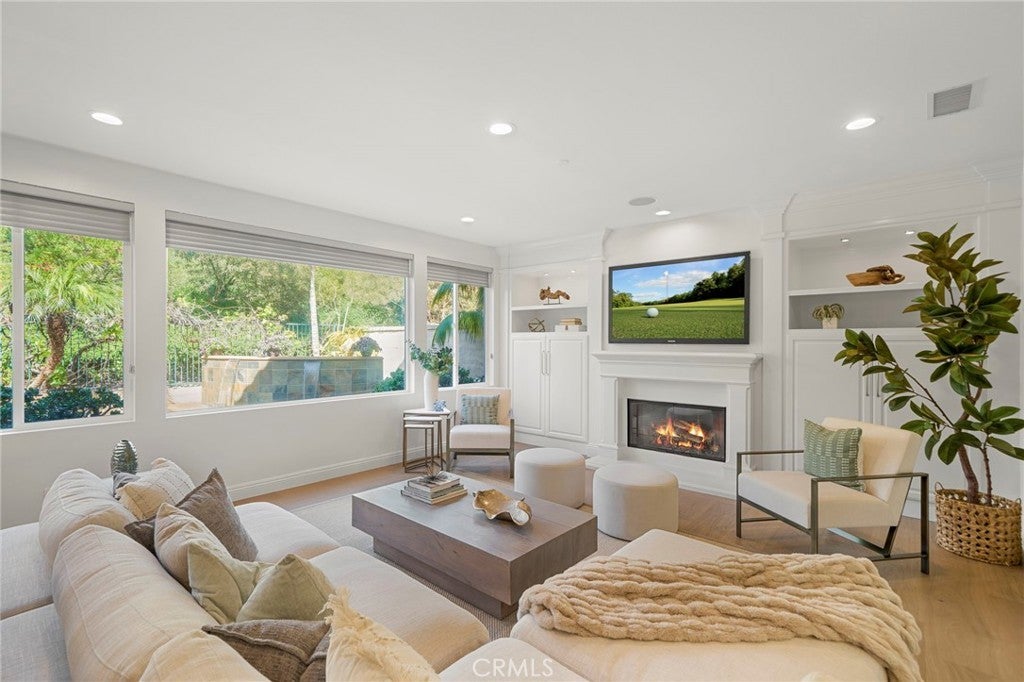 Welcome to the newest gem in the prestigious guard-gated Ritz Pointe community! This newly renovated home inside and out boasts the largest floor plan in the community with 5 bedrooms, 4 bathrooms, a designer kitchen, and multiple living spaces perfect for entertaining. Starting with the exterior, a beautiful mature olive tree, mature cypress trees and fresh landscaping adorn the front of the home along with a brand new diamond patterned driveway. As you enter the home, you are greeted with an expansive foyer with 20’ ceilings and checkered Italian marble and limestone flooring which transitions into 10.5” wide engineered white oak wood flooring throughout the rest of the home. The main level features a large dining room with custom cabinetry, multiple living areas and a gourmet kitchen equipped with new quartzite countertops, genuine brass hardware, and professional-grade Viking appliances. The versatile layout includes a rare downstairs bedroom, while the upper level houses a dedicated office, a private media room perfect for special movie nights, and the remaining bedrooms including the sprawling primary bedroom—complete with his and her closets and a grand spa-like bathroom. The home was meticulously designed to balance the practicality of daily living with the beauty of the natural world utilizing a series of coastal tones and materials. The resort theme extends to the backyard, where a large spa with a dual-waterfall feature serves as the centerpiece for outdoor dining and relaxation near the built-in grill. Furthermore, the residence is fully integrated with a Sonos speaker system, Vivint security, and an Aqualink system for smartphone-controlled spa features. Perhaps the most coveted feature of this location is the private community access to the Monarch Beach Golf Links and Salt Creek Beach where you can play a quick 18 holes or simply walk to the sandy shore. With this size, turnkey appeal and proximity to the beach, this is Dana Point living at its finest!