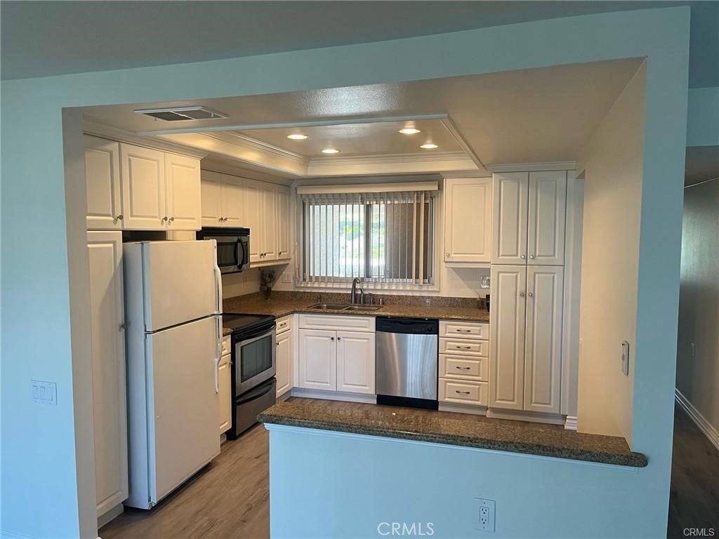 Located in a secured 55+ senior community in the beautiful city of Laguna Woods, this condo offers both comfort and convenience in a truly scenic setting. The unit is easily accessible via elevator or stairs, with a covered carport just steps from the front door. Upon exiting the elevator, the unit is conveniently located to the left. Inside, you’ll find two spacious primary suites, each featuring a full bathroom, ample closet space, and additional storage cupboards—ideal for privacy and functionality. The home features newer luxury vinyl plank (LVP) flooring throughout, providing a clean, modern look with low-maintenance care. Rent includes water, trash, Association dues, and basic cable, offering excellent value and ease of living. A small dog or cat is welcome. As a resident, you’ll enjoy resort-style amenities including golf courses, fitness centers, tennis courts, and seven clubhouses complete with pools, spas, and a wide range of social activities—perfect for an active and engaging lifestyle. Please note: All prospective tenants are subject to the Association screening and approval.