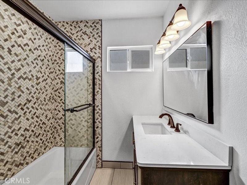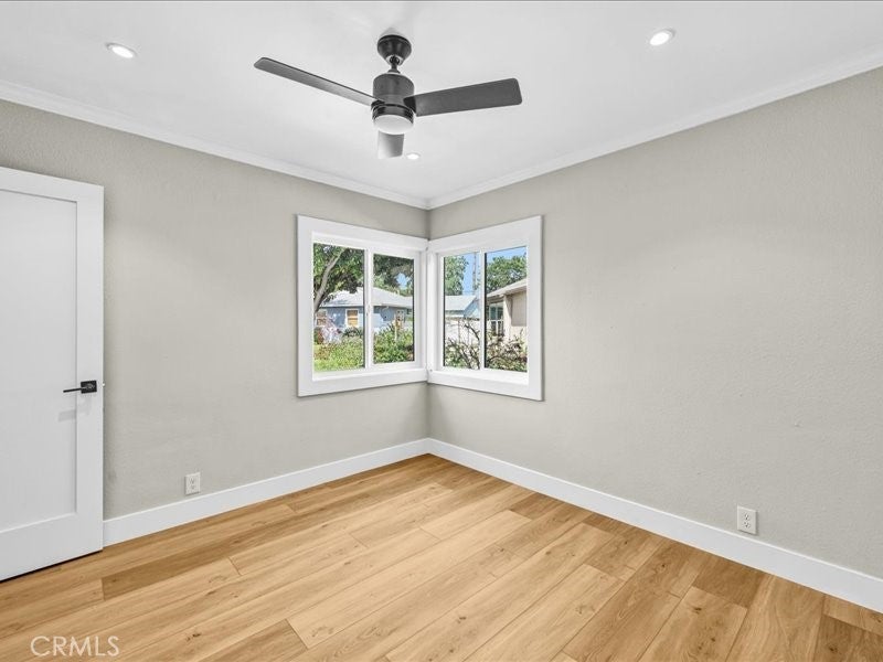 Welcome home! So much potential in this home. End of the cul-de-sac, so much room to this property. This home has an updated kitchen, newer windows,and cabinets with beautiful counters and recessed lighting. Beautiful updated bathroom tile flooring and shower/bath combo. The bedrooms boast laminate flooring and ceiling fans. Tastefully painted interior. There is a bonus room off the garage with a fireplace. Make it an ADU with potential extra income. This lot is big enough for so many ideas and sources of income. You have options to add 2 ADU’s. The backyard has split yards, easy to convert back to a big yard. Great starter home and investment options