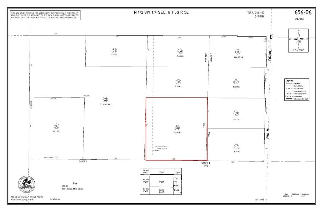 ±10 Acres Development Opportunity – Near Palm Dr, Desert Hot Springs, CA. Excellent opportunity to acquire approximately 10 acres of land located near Palm Dr, offering convenient access to a major north-south corridor in Desert Hot Springs. This parcel (APN: 656-060-008) is part of a larger assemblage opportunity and is located north of the ±31.4-acre parcel and west of the ±4.7-acre parcel, providing flexibility for future development. Zoned for High Density Residential / Mixed-Use (buyer to verify), the property offers potential for residential, multi-family, or long-term investment use. Located in a rapidly growing area with ongoing residential and commercial development. Public utilities may be available in the surrounding area; buyer to verify availability, distance, and connection requirements.