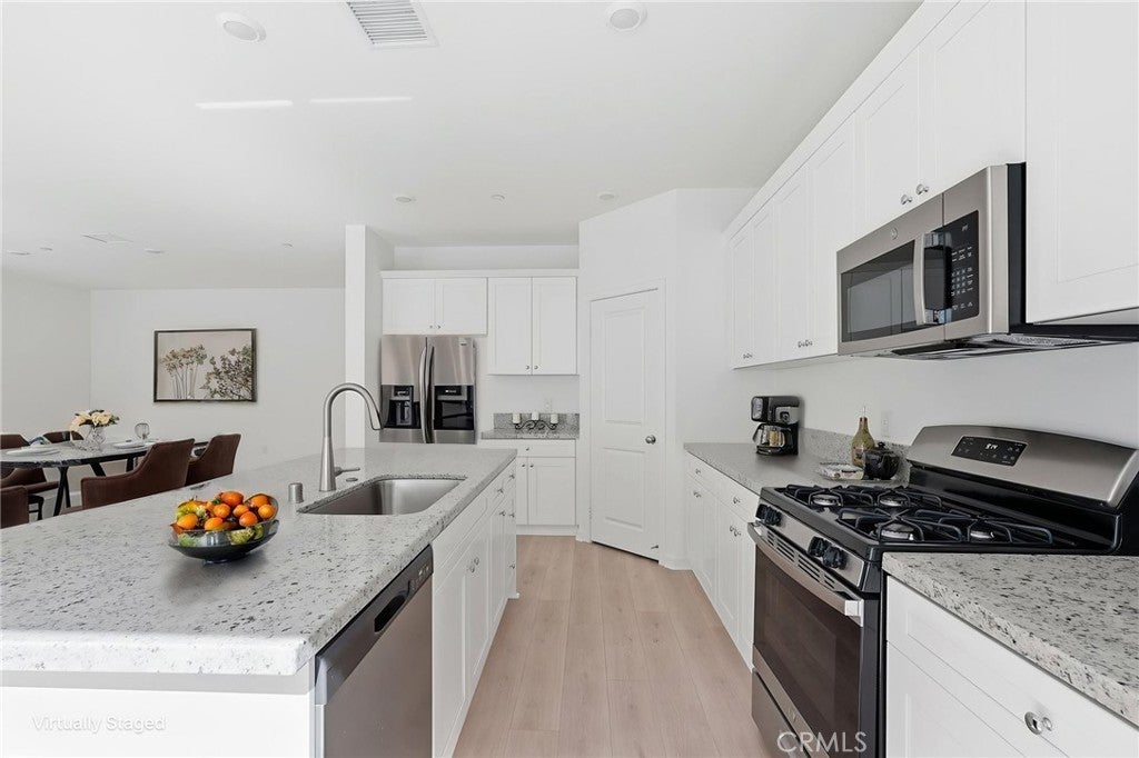 Welcome to this beautifully designed new construction home in the desirable Courts at French Valley community of Winchester. This light-filled residence offers an open-concept layout with wide-plank flooring, recessed lighting, and a spacious great room that flows into the dining area and modern kitchen. The kitchen features quartz countertops, white cabinetry, stainless steel appliances, a gas range, and a large center island with bar seating perfect for entertaining. Sliding doors lead to a private backyard with low-maintenance landscaping and a patio ideal for outdoor dining. Additional highlights include an attached 2-car garage, energy-efficient construction, and 9 paid-off solar panels for added savings. Located in a newer planned community with HOA amenities and within the Temecula Valley Unified School District, near parks, shopping, and commuter routes. Move-in ready!!!