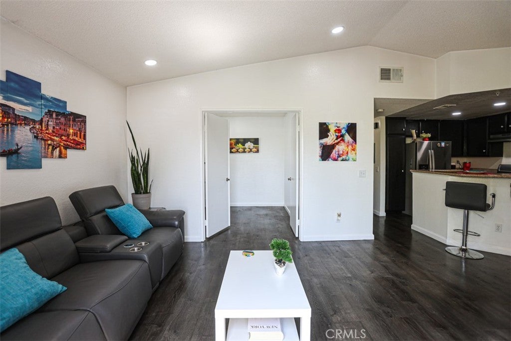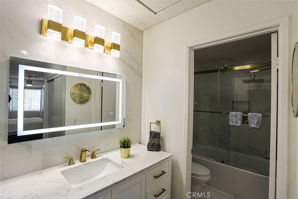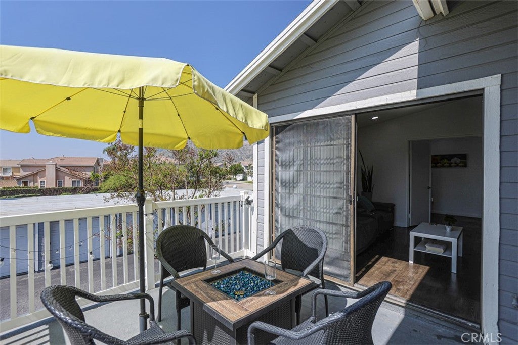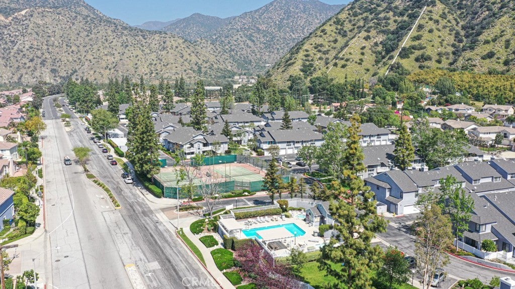 NORTH AZUSA BEAUTY THAT'S EVER SO CUTE AND COZY! Great for First-Time Buyer. Welcome to Crystal Canyon, nestled in the foothills of the Angeles National Forest. If peace, privacy, and natural beauty are what you seek, this is the perfect place to call home. This desirable corner-unit condo features a spacious primary bedroom plus a versatile bonus room/office/den, ideal for a guest room or home workspace. The open-concept layout flows seamlessly to a private deck, perfect for enjoying your morning coffee while taking in serene mountain views. The home has been thoughtfully updated, including a beautifully remodeled bathroom featuring a modern quartz countertop vanity with an undermount sink, an LED backlit mirror with touch controls. Enjoy a spa-inspired shower with marble-look finishes, a glass enclosure, a built-in niche, and a Bluetooth-enabled exhaust fan with integrated speaker and dimmable lighting, creating a relaxing, resort-style ambiance. Additional features include laminate flooring, central A/C and heat, and the convenience of an in-unit washer and dryer area. The property also includes a one-car garage (#31), one assigned uncovered parking space, and an additional guest parking permit. The community offers resort-style amenities, including a pool, spa, jacuzzi, and tennis courts. HOA dues include water and trash, and pets are welcome. Conveniently located near Pioneer Park, hiking and biking trails, and with easy access to the 210, 605, and 10 freeways. A wonderful opportunity to own in a highly desirable location!