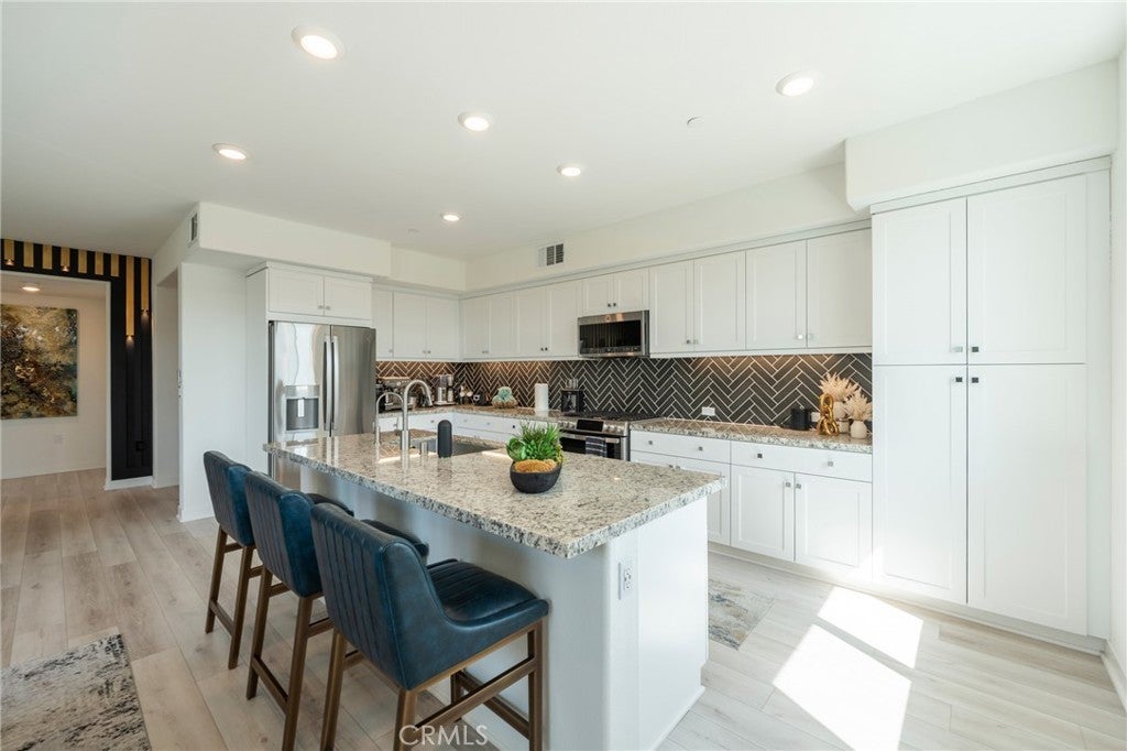 Modern Luxury Living at Alia at A-Town! Experience the pinnacle of contemporary living in this absolutely incredible, corner-unit condo, located at 1867 South Union, Anaheim. Built in 2022, this 1,691 sq. ft. residence located on the top-floor of an interior building within the community offers an expansive, single-level layout defined by high-end designer finishes, motorized shades, and an abundance of natural light in every room. Your journey begins through a private, secure entrance where an elevator whisks you directly to your third-floor sanctuary. The heart of the home is a sprawling open-concept floor plan, featuring a gourmet kitchen with a massive eat-in island bar that flows seamlessly into the formal dining and living areas. Step outside onto your spacious private balcony to enjoy serene views of the sparkling community pool. The home boasts three perfectly sized bedrooms, including a luxurious primary suite complete with a spa-like ensuite bathroom and a walk-in closet. For added convenience, the unit includes a two-car detached garage and a reserved permit-only parking space for your third car (annual permit). Beyond your front door, the lifestyle is unmatched. You are perfectly positioned within walking distance of the "hip" soul of A-Town and the transformative OC Vibe development. From the excitement of the Honda Center, Angel Stadium, and Disneyland to world-class shopping and dining, everything North Orange County is buzzing about is just a short stroll away. Located in the heart of Orange County, access to central and south county is just a few minutes away with quick access to three major freeways, the 5, the 57, and the 22. Major destinations are oh-so-close: only 12 minutes to John Wayne Airport and Irvine Business Complex, 14 minutes to South Coast Metro, and 36 minutes to LAX. This is a rare opportunity to own a top-floor, corner residence with courtyard views in one of Anaheim’s most exciting growth corridors. Premier Community Amenities... Private Onsite Pool & Jacuzzi: Exclusive access to resort-style relaxation. Aloe Greens Park: Massive open green spaces located directly adjacent to the community. Family-Friendly: Onsite playground for the little ones. Social Spaces: Dedicated picnic and BBQ areas perfect for weekend gatherings.