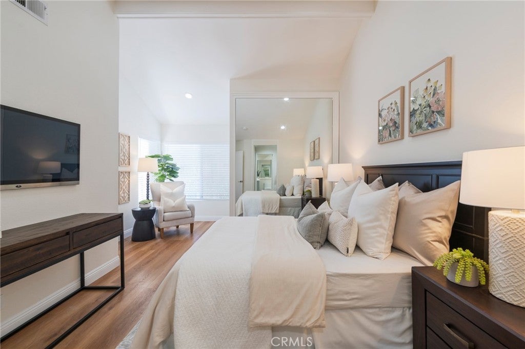 Welcome to your dream home in the heart of West Anaheim! Nestled within the highly sought-after Stanford Court community, this stunning two-story townhome at 520 North Wake Forest Drive offers the perfect blend of modern luxury and cozy comfort. From the moment you step into your private front yard and enter the home, you are greeted by soaring high smooth ceilings, elegant crown molding, and recessed lighting that illuminates the brand-new flooring and fresh paint throughout. This 1,087 sq. ft. residence, built in 1984, is located in a true "pride of ownership" neighborhood, making it an ideal find for those seeking quality and style at an accessible price point of $624,900. The heart of the home is the beautifully remodeled kitchen, featuring expansive counter space, ample cabinetry, and brand-new appliances. Whether you're enjoying a quick bite at the eat-in kitchen bar or hosting a dinner in the formal dining room, this layout is designed for effortless entertaining. Convenience is key with a downstairs bathroom and direct access to your attached two-car garage. Upstairs, you’ll find two perfectly sized bedrooms, including a spacious primary suite equipped with both a massive walk-in closet and a second standard closet for maximum storage. With a monthly HOA of only $400, this turnkey property offers a rare opportunity to own a piece of West Anaheim’s finest real estate.