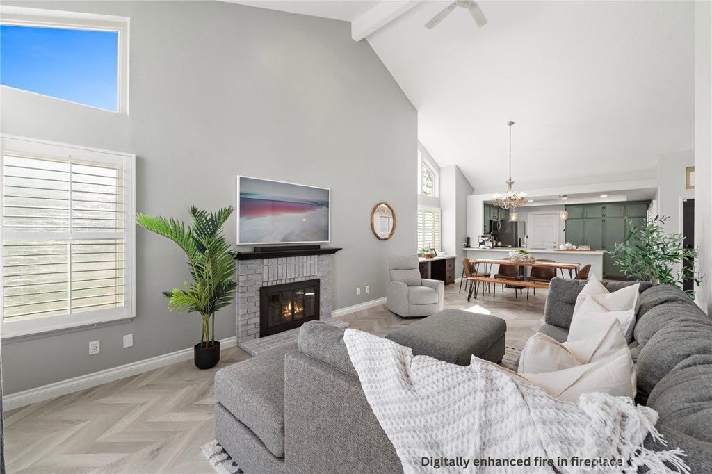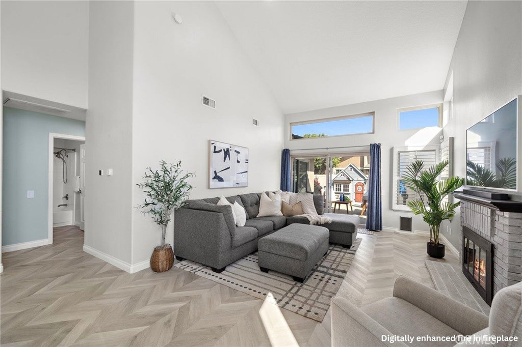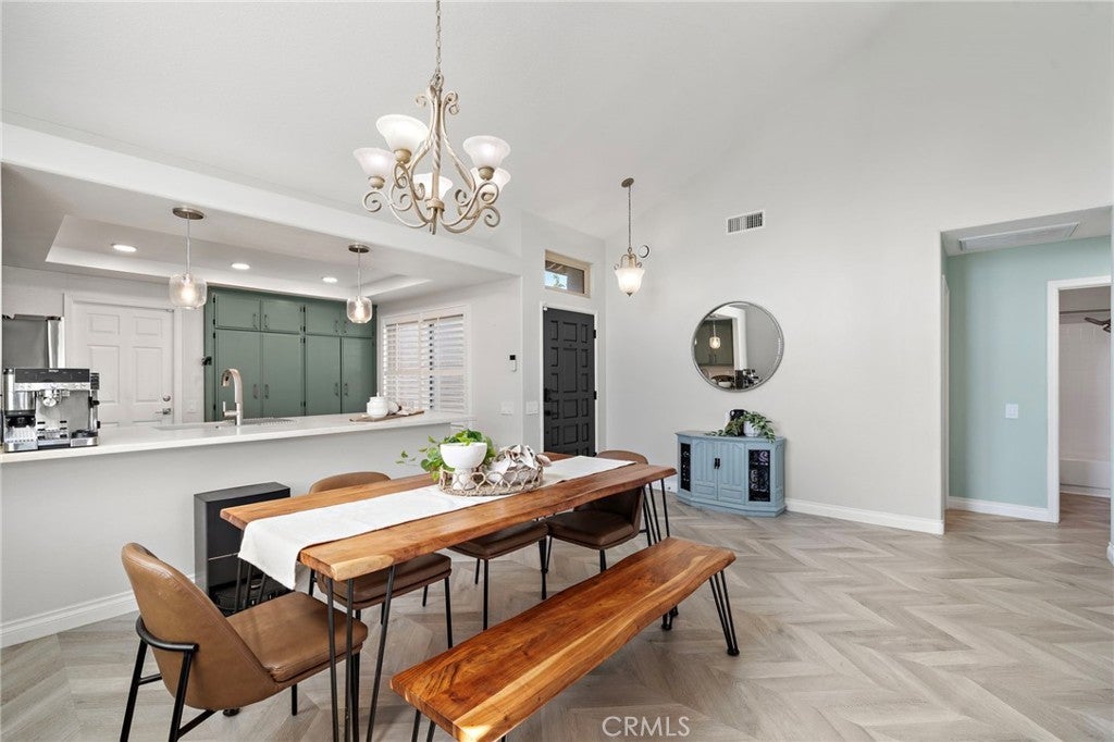 Experience elevated living in this beautifully reimagined Yorba Linda home, where thoughtful design meets effortless comfort. From the moment you enter, soaring vaulted ceilings and an open-concept layout create a sense of space and light that carries throughout the home. The main living areas are anchored by luxury flooring in a timeless herringbone pattern, adding a refined touch while guiding you from the entry into the heart of the home. The living room offers a warm and inviting setting, centered around an updated brick fireplace and complemented by a soft, neutral palette. Natural light pours in, enhancing both the scale and livability of the space, while features like a Panasonic Balanced Home ventilation system and whole-home water filtration add an extra layer of everyday comfort. The layout flows seamlessly into the dining area and a well-appointed kitchen designed for both function and style—ideal for entertaining or simply enjoying daily life. The home features two well-proportioned bedrooms, including a spacious primary suite with vaulted ceilings and a peaceful view of the backyard, creating a true retreat. Both bathrooms have been thoughtfully upgraded with modern finishes, offering a clean, cohesive design that matches the quality seen throughout the home. Beyond the home itself, the lifestyle is just as compelling. Located in the heart of Yorba Linda, you’re moments from scenic equestrian trails, Black Gold Golf Club, and the shops and dining at Yorba Linda Town Center. All of this, within the highly regarded Placentia-Yorba Linda Unified School District. A turnkey opportunity that blends design, comfort, and location in one of Orange County’s most sought-after communities.