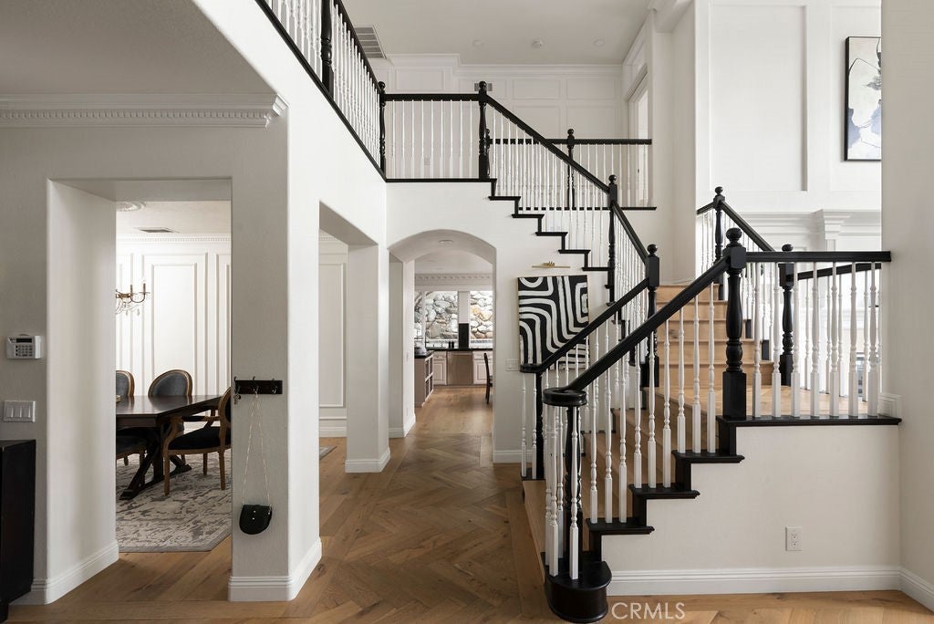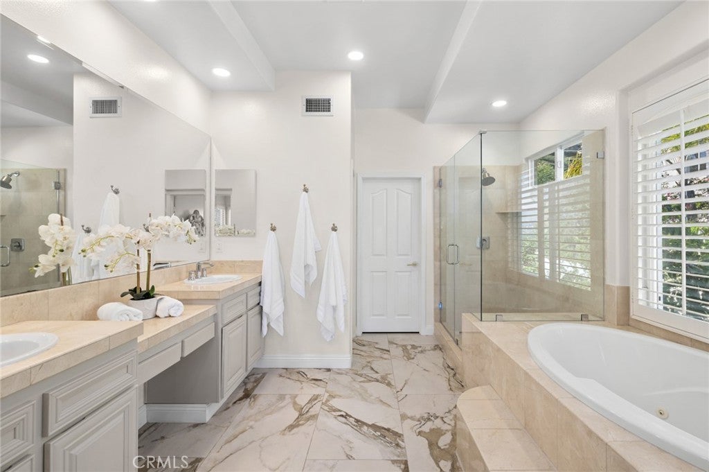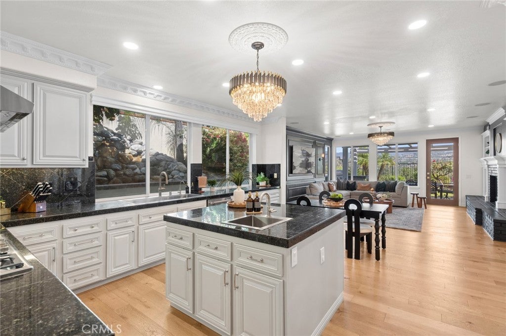 ABSOLUTELY STUNNING panoramic view estate in the Regency at East Lake Village! A completely re-imagined S&S estate residence commanding endless panoramic city light views. Meticulously updated and remodeled with contemporary designer finishes delivering elevated luxury at every turn. The statement lighting and show-stopping chandeliers deliver an opulent sanctuary that balances timeless elegance with a glamorous contemporary atmosphere. From the moment you walk in the door, the home will capture your emotions and steal your heart. Step through the double-door entry into a soaring two-story foyer with dramatic staircase, hardwood laid in herringbone, custom millwork, light filled windows and elevated ceilings setting the tone for a refined living environment. The kitchen is not just upgraded, it’s a showpiece. A floor-to-ceiling picture window frames a serene rock waterfall, while white raised-panel cabinetry, striking galaxy black stone counters, premium stainless appliances, an oversized island, and a massive walk-in pantry create a space built not to just impress but to perform. All of it opens seamlessly into an expansive family room with custom built-ins, paneled accent wall, a statement fireplace and uninterrupted vistas. The main level hosts the perfect sized guest suite with en-suite bathroom, separate powder room with designer appointments, and a fully equipped laundry room. Ascend up the storybook staircase to 4 additional bedrooms including a spectacular primary retreat featuring a private balcony with sweeping views, cozy fireplace flanked by custom cabinetry, dual vanities, jetted soaking tub, an oversized walk-in glass shower and an expansive walk-in curated wardrobe. A large secondary bedroom designed for a princess and middle bedroom are serviced by a large updated full bath. The 5th bedroom with en-suite bathroom is separated from the others and completes the upstairs. The outdoor living area is an entertainer’s paradise with covered alfresco lounge and dining, a built-in barbecue and island, manicured lawn, and the unforgettable views creating a private resort ambiance. Enjoy the ultimate East Lake lifestyle with access to resort-style amenities including multiple pools, a scenic lake with fishing and boating, walking trails, clubhouse, fitness center, and year-round community events and activities. This turnkey estate is the ultimate blend of refined elegance and modern luxury. Finally, you can stop searching and start living!