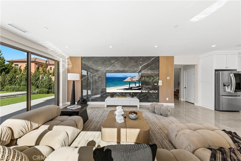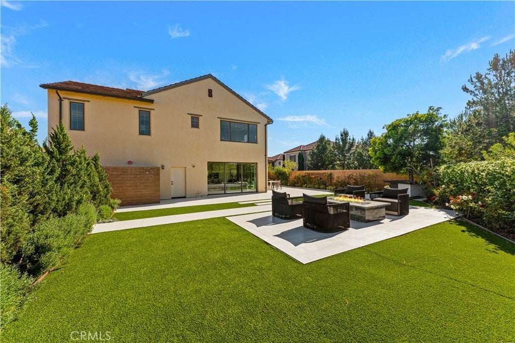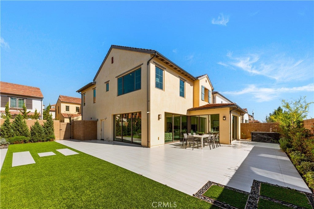 HUGE BACKYARD, which is incredibly rare to find! Welcome to 121 Oceano, an exceptional 3-bedroom, 2.5-bathroom end-unit home built in 2020, nestled in the prestigious guard-gated community of Orchard Hills Reserve. Offering a sprawling 2,205 square feet of thoughtfully designed living space, this property is significantly larger than comparable models, but its true centerpiece is the unparalleled indoor-outdoor connection. Set on a premium lot with no immediate neighbor on one side, the ultra-private backyard is an entertainer's dream. Designed with clean architectural lines and multiple levels of usable space, it features a built-in outdoor kitchen island with a prep sink, a modern fire pit lounge, premium low-maintenance artificial turf, and extensive elegant hardscape. There is even a custom-built modern pet house matching the home's aesthetic! Surrounded by a backdrop of mature greenery, this space feels open, private, and remarkably quiet. The transition indoors is completely seamless. Massive floor-to-ceiling multi-panel sliding glass doors fully retract, inviting you into a brilliantly designed open-concept layout. Filled with natural light, the home features sleek high-gloss tile flooring, while the unobstructed sightline from the entry extends directly to the lush outdoor space, reinforcing the home’s incredible sense of openness. Upstairs, the luxury continues in the primary suite. A massive picture window perfectly frames unbeatable, sweeping views of your private backyard and the surrounding mature trees, bringing in both gorgeous light and a sense of calm. Every detail has been thoughtfully addressed, right down to the fully finished garage featuring pristine epoxy flooring, custom-painted walls, bright LED lighting, and a water treatment system. An inviting exterior facade and elegant paver driveway enhance the home’s impressive curb appeal. Located within the highly sought-after, exclusive gated enclave of Orchard Hills Reserve, residents enjoy ultimate security and peace of mind, along with access to resort-style pools, parks, and top-rated Irvine Unified schools. This home offers a rare combination of space, absolute privacy, and turnkey perfection!