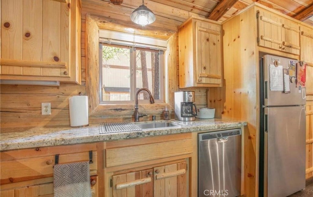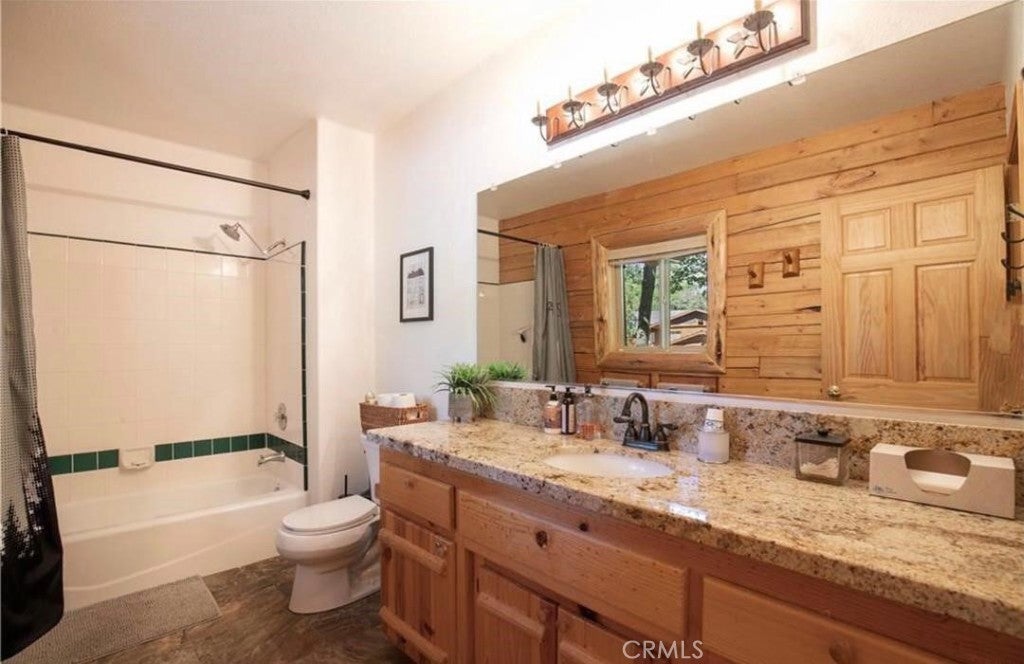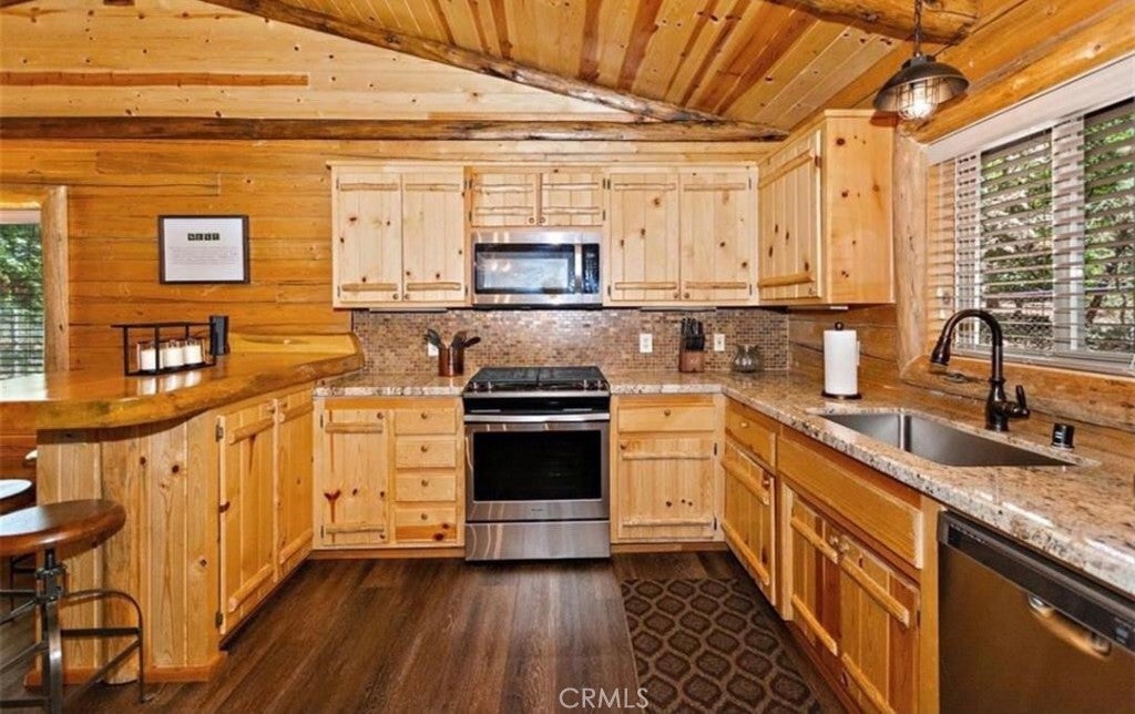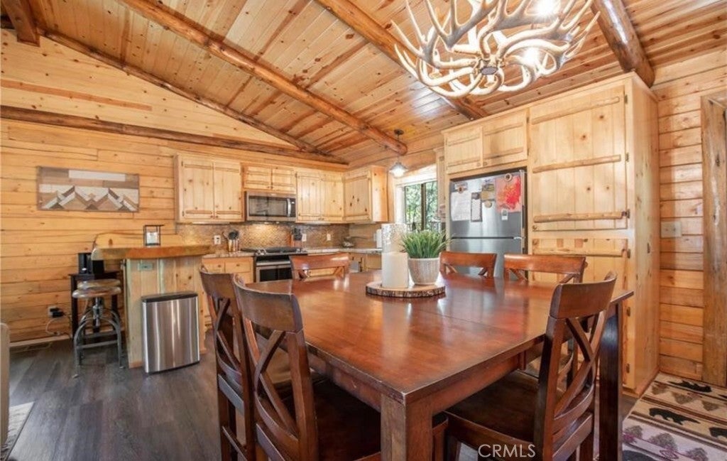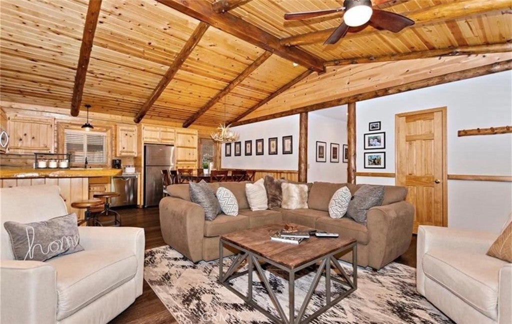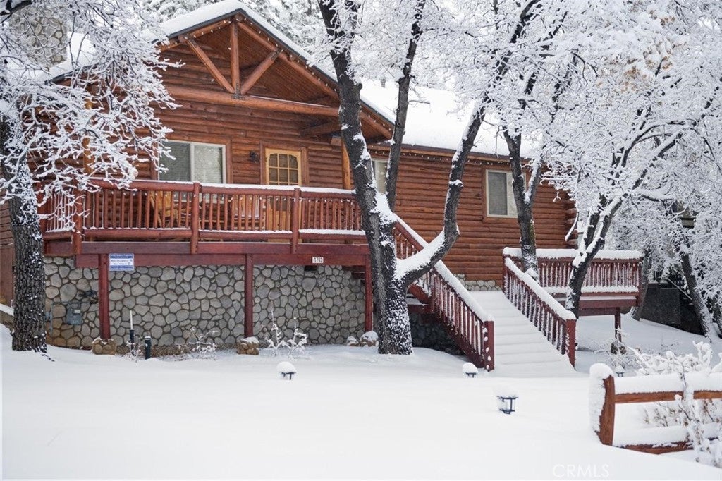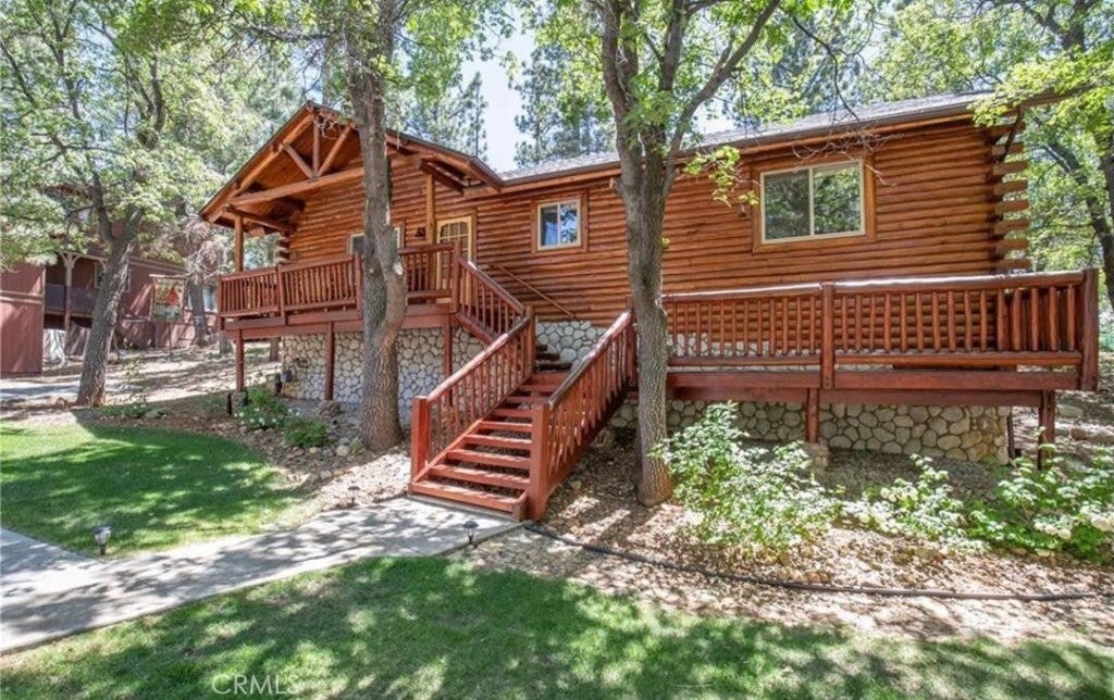 Wow! Wow! Wow! What a Gorgeous Log Cabin Home in the Moonridge Mountain Estates, Home was Remodeled in 2018 and has Large Front Porch Area for enjoying the area and the Seasonal Weather, This Single Story home has a unique Open Floor Plan gives you all the room for Entertaining Friends & Family, This 3 Bedroom / 2 Full Bath Cabin is Absolutely Beautiful with its combination of Rustic and Style you will feel right at home, Walk thru the front door to a Large Great Room that Boasts a Beautiful Slate Stacked Stone Fireplace with Custom Mantle & Hearth, High Beamed Ceilings showing Beautiful Wood lined interior W/Log Beams, Large Family Kitchen with Stainless Steel Appliances, also has a Dining Area and Breakfast Counter with Plenty of Room to hang out and enjoy this Beautiful Cabin, Large Master Bedroom with Large Separate Bathroom, 2 Guest Bedrooms Good Size with Closets, Guest Bathroom, Carpet in all the Bedrooms, Rest of home has Engage hybrid flooring (100% waterproof), Home is a Smart Home with 4x Motion Sensor Cameras, Smart Door Locks, Smart Thermostat, Smart Smoke and Carbon Monoxide Detector, Ceiling Fans Great Room & Bedrooms, Back Porch Area has Jacuzzi tub and BBQ, Large Front Driveway to park all your Cars, Large Front Yard w/Sprinkler System on Timer