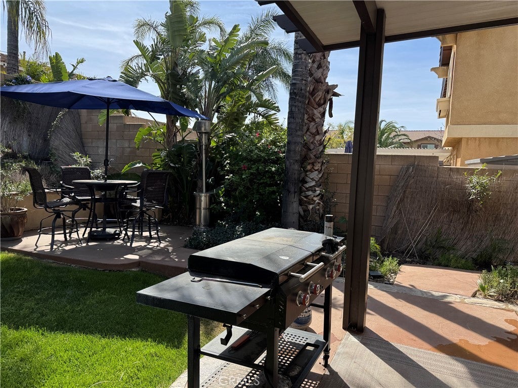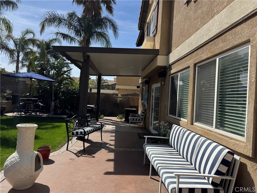 Welcome to this beautifully maintained home featuring 3 bedrooms, 2.5 bathrooms, and a versatile upstairs loft- perfect for a home office, playroom, or additional living space. The inviting living room offers a cozy fireplace and built-in surround sound, creating the perfect space to unwind or entertain. The spacious primary suite includes a walk-in closet, while ceiling fans throughout the home enhance comfort year-round. Step outside and enjoy seamless indoor-outdoor living with a lattice-covered patio, ideal for BBQs and gatherings. The backyard is thoughtfully designed with charming café lighting and a tranquil waterfall feature, creating a serene, private retreat. Enjoy the added value of a fully paid-off solar system, along with a prime location near freeways, parks, shopping centers, and Summit Shopping. Located within the highly sought-after Etiwanda School District.