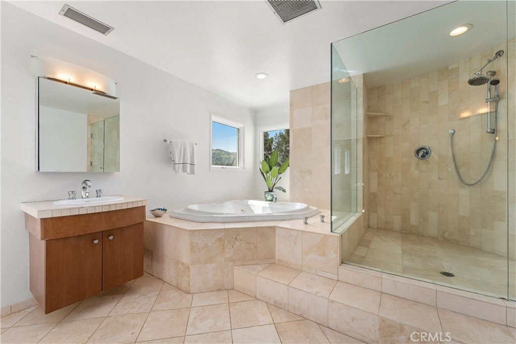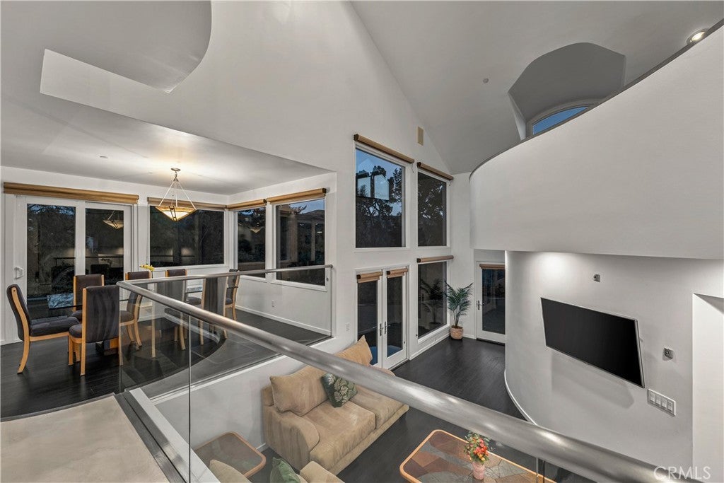A rare and unforgettable architectural statement in the heart of Anaheim Hills, this privately set contemporary residence is a masterclass in design, light, and spatial experience. Positioned on an expansive 22,113 sq foot cul de sac lot, the home offers approximately 4,308 square feet of refined living where form and function exist in perfect harmony. Conceived and built by a renowned architect, the residence was designed to challenge convention and elevate everyday living. Sculptural curves, soaring ceilings, and dramatic sculptural walls invite an ever-changing play of natural light while framing captivating hillside and city light views. Every line, every material, and every volume was intentionally crafted to create a sense of openness, movement, and connection. At the heart of the home lies a striking multi-level composition anchored by a signature loft space that floats above the main living areas. This architectural centerpiece creates a rare living experience, offering both visual connection and spatial separation across the living room, dining area, kitchen, and entertainment spaces. It is a home designed to be experienced. The kitchen is both a focal point and gathering place, where form meets function through clean lines, stainless steel appliances, generous storage, and a distinctive curved breakfast bar that mirrors the home’s fluid design. Natural materials enrich the interiors, including polished concrete floors, stainless steel detailing, smooth stucco finishes, and a serene primary suite bath finished in travertine with a soaking tub, glass enclosed shower, and dual vanities. Integrated systems enhance both comfort and efficiency, including solar power, energy efficient Low E windows, zoned dual HVAC, tankless water heater, water softener, and a fully fire sprinklered design. Clerestory windows and passive ventilation strategies further elevate the home’s environmental performance while maintaining a refined aesthetic. The flexible floor plan offers four bedrooms, a guest room or office, three bathrooms, an entertainment room, storage room, and multiple interconnected living spaces designed for both intimate moments and grand gatherings. Complete with available floor plans and geotechnical report, this residence offers not only architectural significance, but confidence and clarity in its design and construction. This is more than a home. It is a living work of art, a place where design inspires, light moves, and life unfolds beautifully.