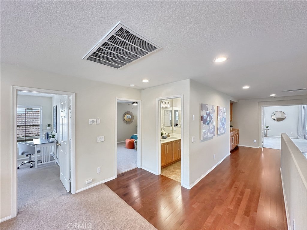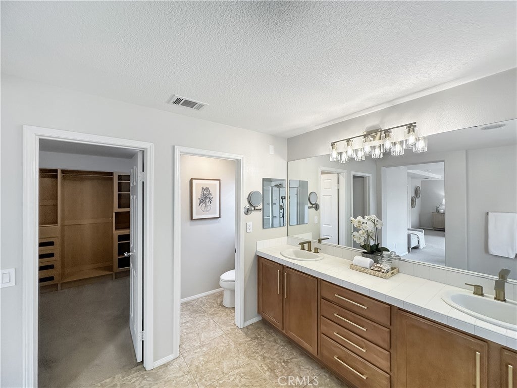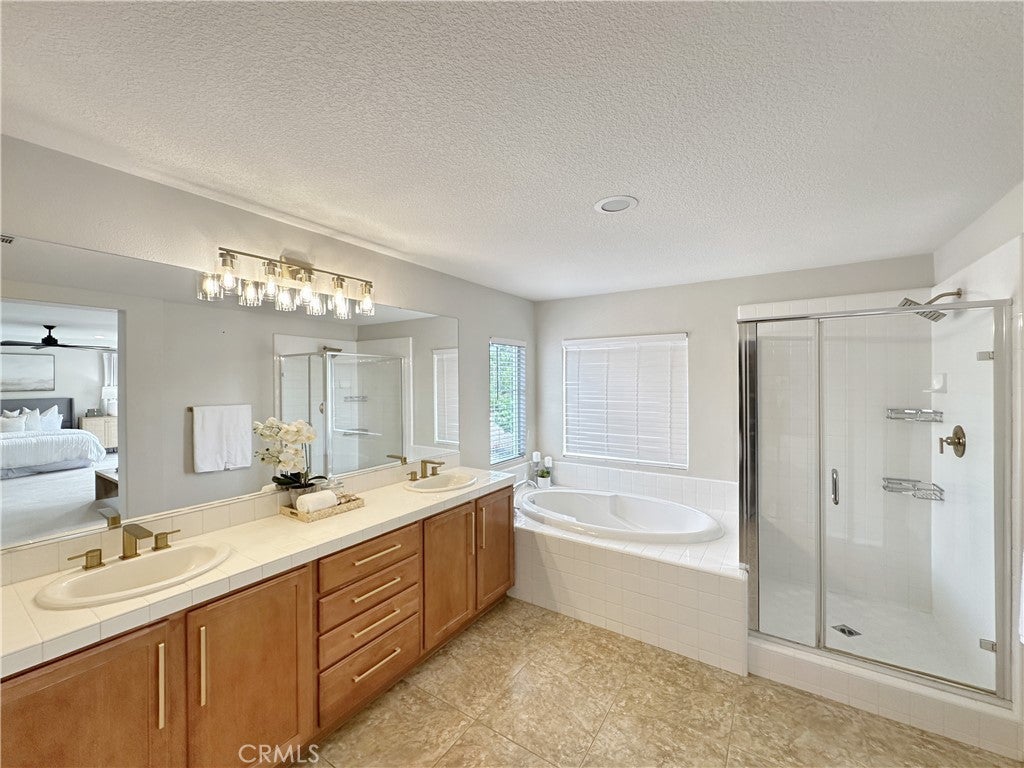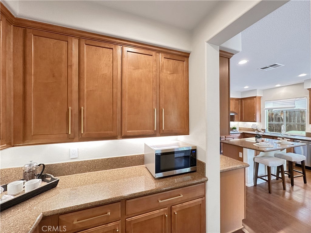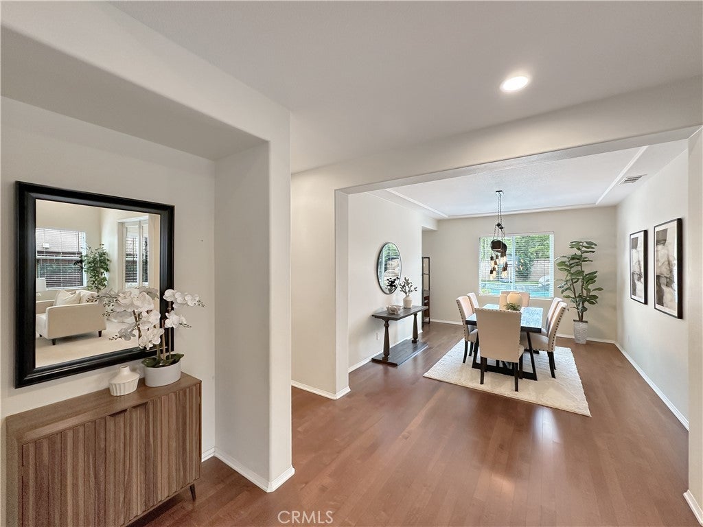 Stunning Crowne Hill pool home now features a newly plastered saltwater pool and offers the perfect blend of comfort, function, and resort-style living just minutes from Temecula wine country. Desirable floor plan includes a downstairs bedroom, full bath, and private office with double glass doors, ideal for guests, multigenerational living, or working from home. Rich hardwood flooring flows through most of the home, with a formal dining room positioned for easy entertaining and poolside views. The kitchen features granite countertops, gas cooktop, microwave, double ovens, center island with bar seating, and a butler’s pantry and a brand-new stainless refrigerator. Recently updated laundry room adds a modern touch with brand-new washer and dryer. Spacious family room includes a gas fireplace and direct backyard access for seamless indoor-outdoor living. Plantation shutters throughout most of the home. Upstairs offers a large loft, media/office nook, spacious primary suite with French door entry, dual sinks, soaking tub, separate shower, and walk-in closet with custom built-ins, plus two additional bedrooms and a full bath. Additional upgrades include QuietCool whole-house fan and solar for energy efficiency. Both front and backyards feature extensive hardscape and landscape. The private backyard is an entertainer’s dream with a newly plastered saltwater pool, rock slide, waterfall, spa, pool fence, tropical landscaping, plum tree, grapevines, expansive patio, and fire pit seating area. Located in one of Temecula’s most sought-after neighborhoods near top-rated schools, shopping, and award-winning wineries.