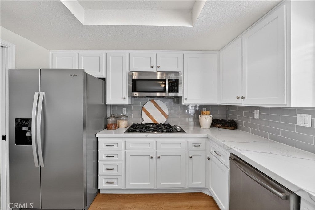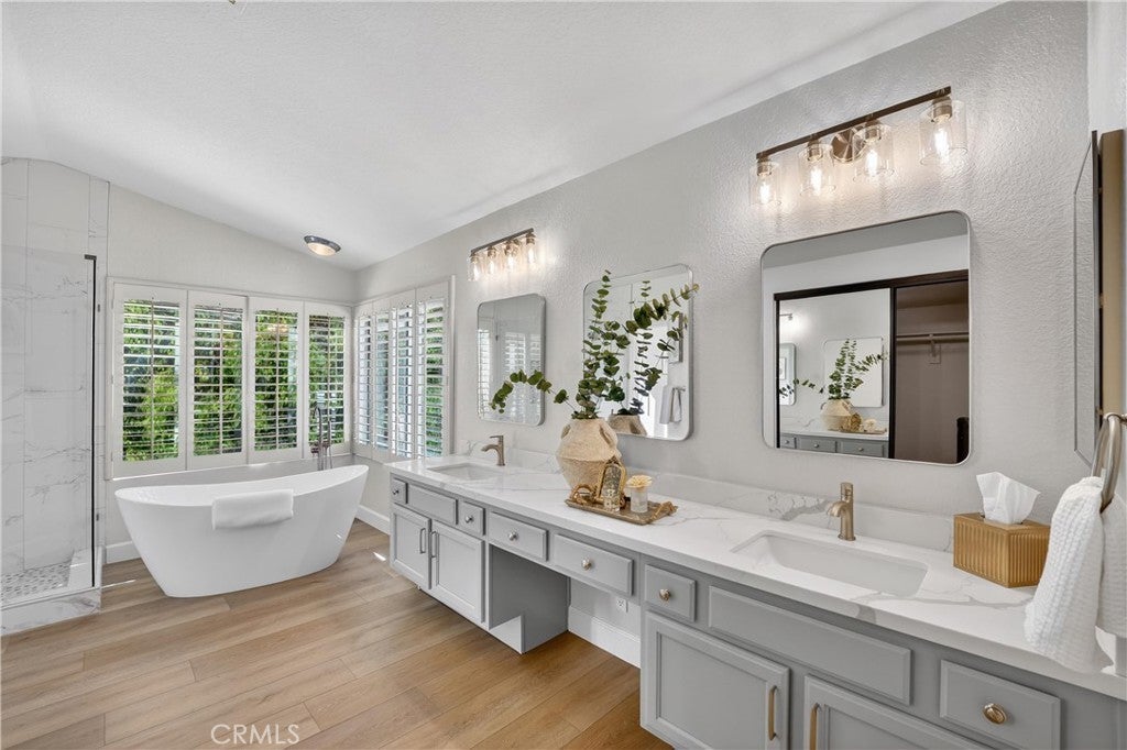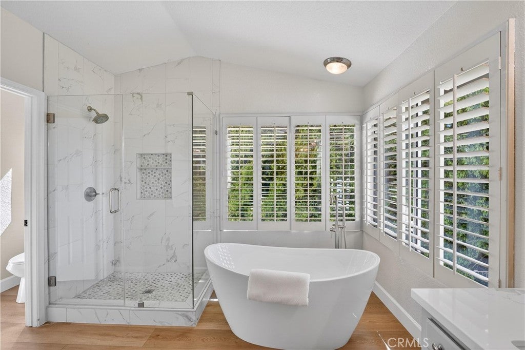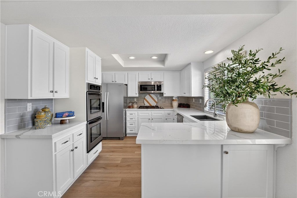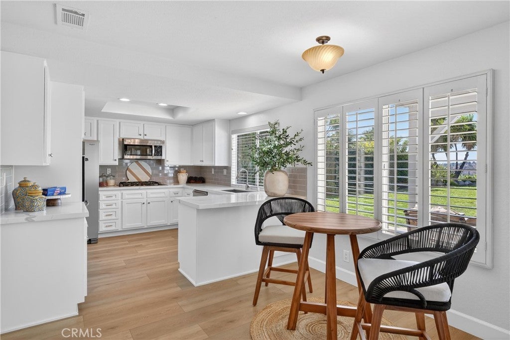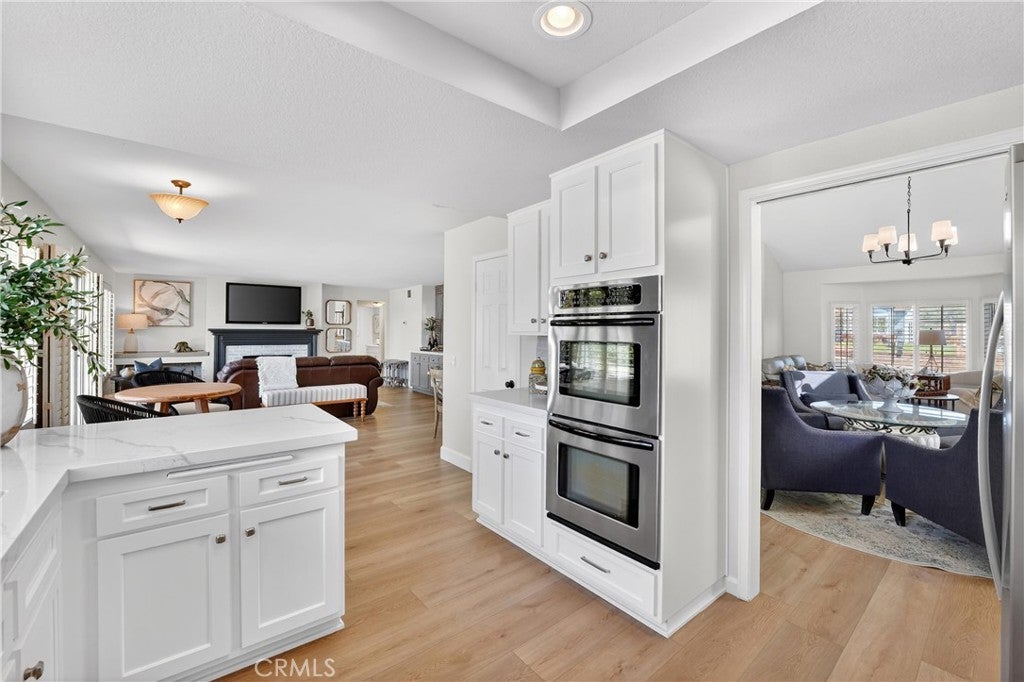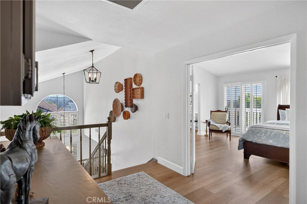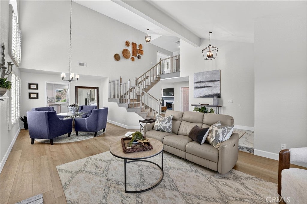 Nestled in Yorba Linda’s desirable foothill community, this home offers the perfect balance of suburban comfort and an effortless outdoor lifestyle, with stunning sunset views, Disneyland fireworks, and even Catalina Island on a clear day. Featuring 4 bedrooms and 3 bathrooms, the layout is both functional and flexible. A main-floor bedroom sits adjacent to a 3/4 bath—ideal for guests or multi-generational living. Upstairs, the expansive primary suite provides a private retreat with space for a home office, nursery, or potential (fifth bedroom). Soaring ceilings in the living and dining rooms create a bright, open feel, anchored by a wood-mantel fireplace in the living room. The space flows seamlessly into the dining area, while the kitchen and family room connect as one inviting area with beautiful views and a second fireplace—perfect for everyday living or entertaining. The kitchen has been updated with shaker-style cabinet doors, quartz countertops, a classic subway tile backsplash, and a full suite of new appliances, combining style and functionality. Throughout the home, thoughtful upgrades enhance the modern aesthetic, including luxury vinyl flooring, 5-inch baseboards, freshly painted walls, a porcelain-tiled entry, and an impressive staircase finished with new carpet. Upstairs, an oversized landing adds flexibility and features expansive built-in linen and storage, a rare and highly functional upgrade. Secondary bedrooms include custom built-ins and design details, while the hall bathroom offers a dual vanity for convenience. Bathrooms throughout the home have been upgraded with natural stone, redesigned showers, and sleek glass enclosures for a spa-like experience. Additional features include new light fixtures, a custom bar accent wall, fire-rated doors, and a new water heater. The exterior has been freshly painted, and the home offers space between neighbors, enhancing privacy and providing room for lifestyle upgrades. Located within the highly regarded Placentia-Yorba Linda Unified School District and just minutes from parks, trails, and open space, this home is a great opportunity in one of Yorba Linda’s most sought-after neighborhoods.