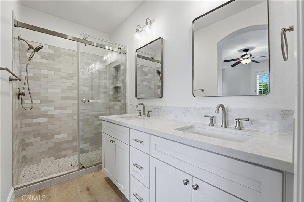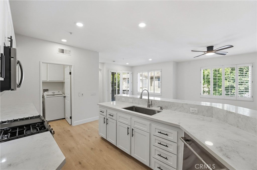 WELCOME TO RESORT STYLE LIVING AT SHERIAN PLACE- This newly remodeled home with high quality choices creates an extremely comfortable space to relax and enjoy! from the moment you drive up into the 2 car direct access garage with EV charging station, you are greeted at the entry with new custom wood laminate flooring and stairway that leads to an open living space that has plenty of windows bringing in the natural light. The huge area splits both bedrooms and bathrooms which creates privacy and a nice flow including a fireplace and a conveniently placed balcony for BBQs and entertaining, a chefs size kitchen with brand new stainless steel appliances, a bending breakfast bar style counter with all new beautiful cabinets, counter tops, backsplash, flooring and interior paint throughout. Master bath got a full remodel with custom tile shower with barn door style shower doors. Keep cool with central A/C, and enjoy inside laundry, (all appliances including washer/ dryer here for you to use) The location of the community is close to expressways, freeways, shopping and dining around the market place and additional outstanding choices, some of the best schools in Southern California! Safety first as you drive into the gated community you experience the well maintained lush landscaping, an extraordinary pool, BBQ area and the nicest safe private playground you have ever seen all of these amenities are yours to use as the HOA dues are paid for by the owner and included in the lease. A MUST SEE!