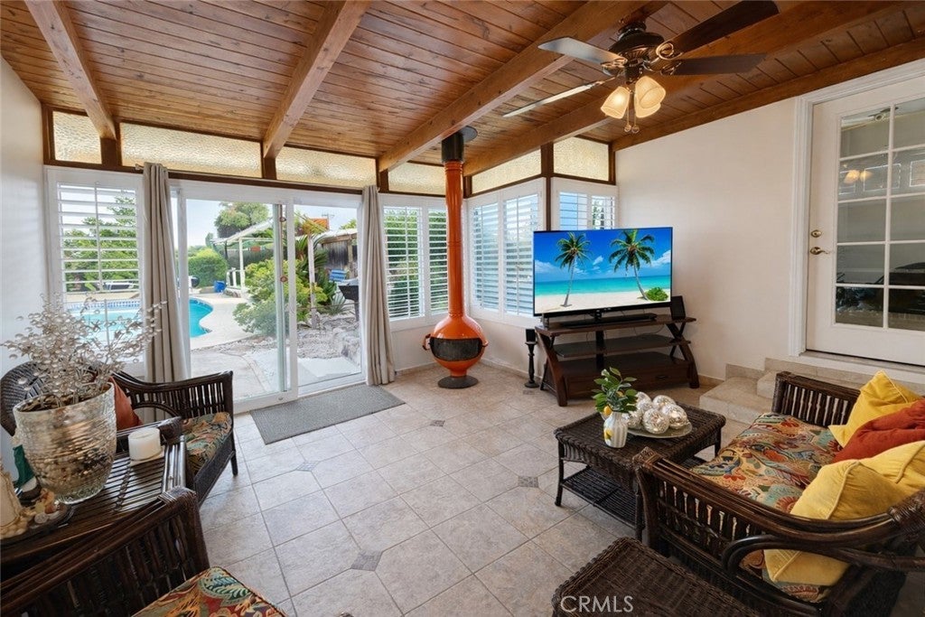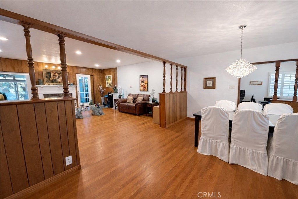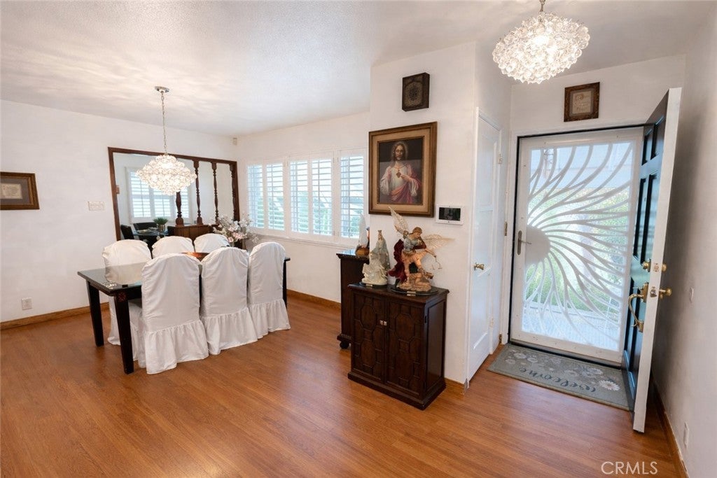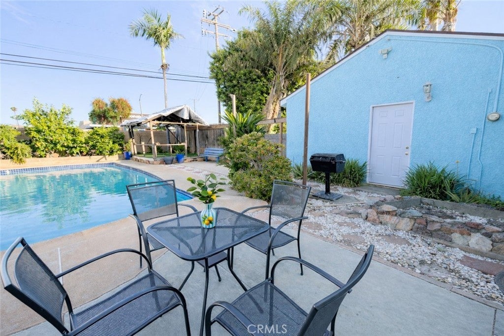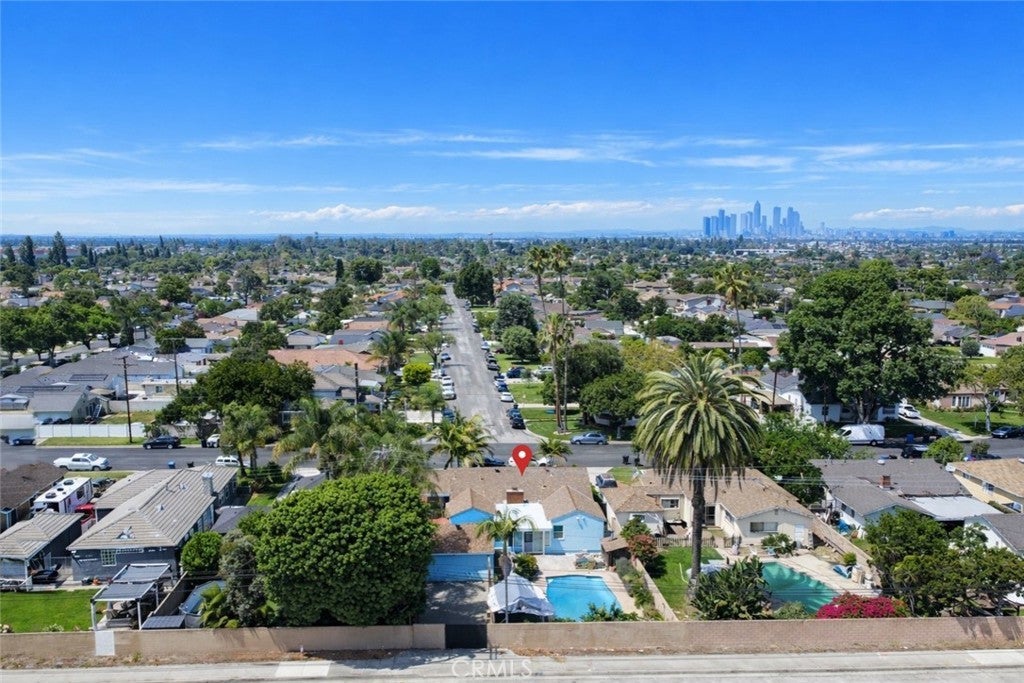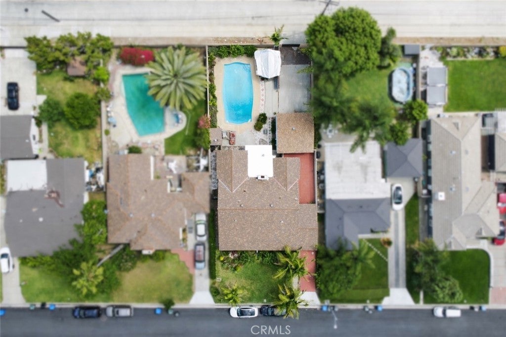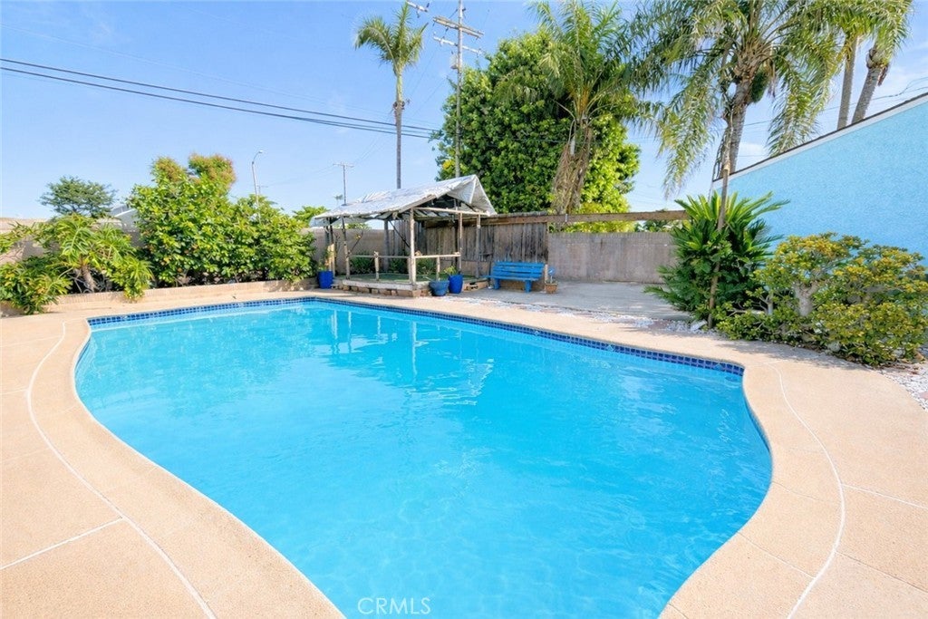 Welcome to this beautifully upgraded, custom-built pool home in the heart of Downey—a proud winner of the City of Downey Beautification Award! Set on a spacious 8,000+ sqft lot, this meticulously maintained property greets you with exceptional curb appeal, professional landscaping, and a wide front porch perfect for relaxing among fragrant flowers. Recently painted inside and out, the nearly 2,200 sqft interior features a seamless blend of original and new hardwood flooring, porcelain tile, and exquisite custom woodwork throughout. The updated kitchen boasts custom oak cabinetry with pantry, blue pearl granite countertops, full backsplash, peninsula seating, Kohler fixtures, and a vintage Thermador electric stove, oven, and broiler in perfect condition. This home includes four spacious bedrooms—three with custom ceiling fans and one with porcelain tile, marble accents, recessed and pendant lighting—and two fully remodeled bathrooms with designer Kohler fixtures, marble and porcelain finishes, cast iron tub, custom double vanity, and elegant lighting. The formal dining room, large living room with marble wood-burning fireplace, and step-down den with a second fireplace and pool views create inviting spaces for entertaining and comfort. Additional highlights include new double-pane windows with plantation shutters, whole house fan, attic cooling system, separate laundry room, and hallway with French doors. The oversized detached double garage, with a new roof and air vent, offers potential for an ADU, while the covered carport features a professional-grade hoist for car enthusiasts. There’s also ample RV/boat parking with a 250V hookup and a long driveway that accommodates up to 10 vehicles. The private backyard oasis includes a sparkling exercise pool and a fully powered tiki house, making it ideal for summer gatherings. Centrally located near top-rated schools, parks, shopping, golf courses, and freeways, this luxurious, move-in-ready home offers unmatched comfort, character, and income potential!