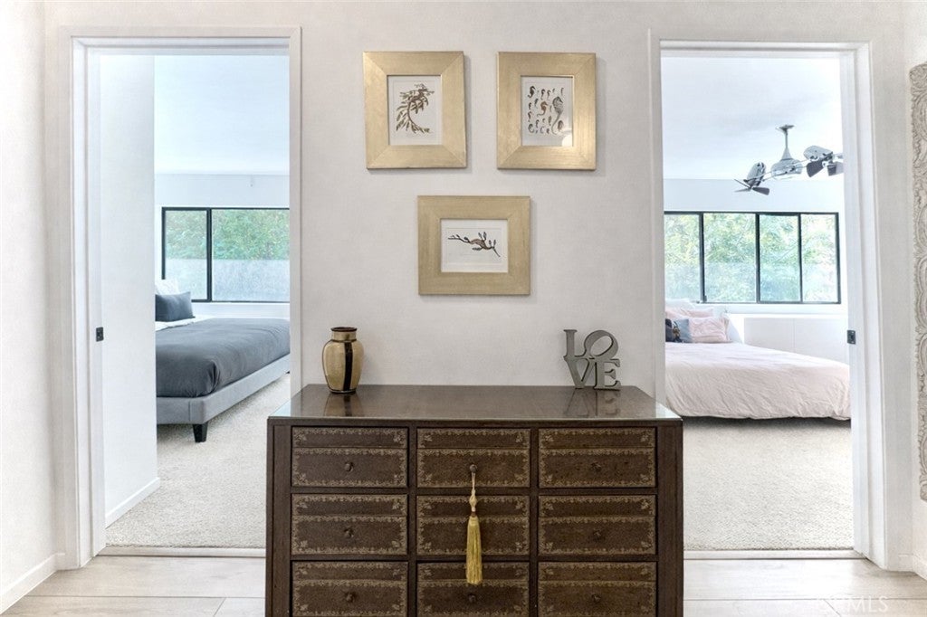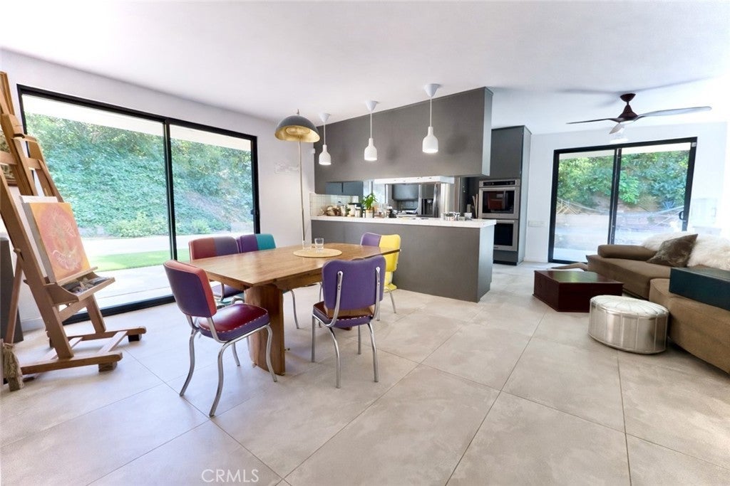 South of the Boulevard in Woodland Hills, this private residence offers refined comfort, space, and effortless indoor outdoor living. A charming front courtyard with fire pit creates a warm and inviting entry. The light filled interior opens seamlessly to a tranquil backyard retreat with pool, multiple lounge areas, and sweeping hillside and Valley views. The expansive lot presents an excellent opportunity to expand or add an ADU. A flexible floor plan includes a main level bedroom with en suite and direct courtyard access, along with additional bedrooms and updated baths upstairs. Ideally located near shopping and dining, while offering privacy and a peaceful setting.