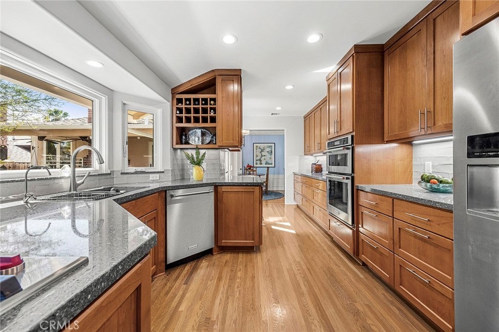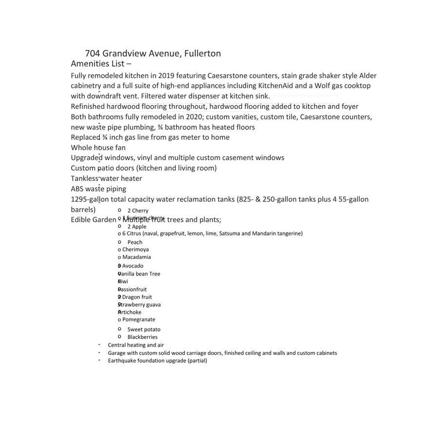 Nestled within a veritable arboretum of fruit bearing trees, drought tolerant plantings and a stunning California cypress pine tree, sits a beautifully crafted and upgraded residence. Built in 1940 by local home builders, the Jewett Brothers, 704 Grandview Avenue is a seamless blend of understated pre-war architectural details and high quality and thoughtful upgrades. Stunning hardwood flooring is found in the entry foyer and throughout the home, setting the stage for a pristine and understated interior. The well-proportioned living room features an art-deco inspired tray ceiling detail, stately brick fireplace and upgraded custom casement windows. A solid glass pane patio door leads to the back porch and on to the backyard. Corner windows and custom wainscotting are highlights of the dining room that flows seamlessly on to the stunning, functional and spacious kitchen. Fully remodeled by a general contractor in 2019, the kitchen hosts striking Caesarstone counters, stain grade shaker style Alder cabinetry and a full suite of high end appliances including KitchenAid and a Wolf gas cooktop with downdraft vent. The charming kitchen sink is set within a unique bay window alcove overlooking the backyard. French doors lead to the backyard and convenient direct garage access is found in the kitchen. Welcoming and spacious bedrooms all feature original closets with built-ins and hardwood flooring. Both bathrooms have been fully and thoughtfully remodeled down to the studs, with new flooring, vanities, plumbing and fixtures. Custom tile finishes are found in the bathtub surround in the front bathroom and in the custom frameless glass shower in the rear bathroom. A secluded and peaceful feeling is found in the backyard with an organic sensibility that is highlighted by a striking Palo-Verde tree and a Vanilla Bean tree that affords shelter for the chicken coop under its canopy. In total the property features 19 fruit bearing trees including, avocado, apple, multiple citrus trees and cherry, to name but a few, a literal edible garden! Further quality improvements include; ABS waste piping, tankless water heater and newer gas supply line from the street.