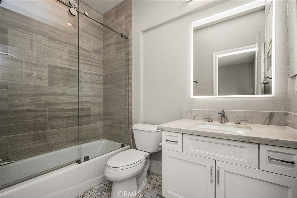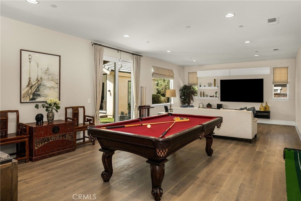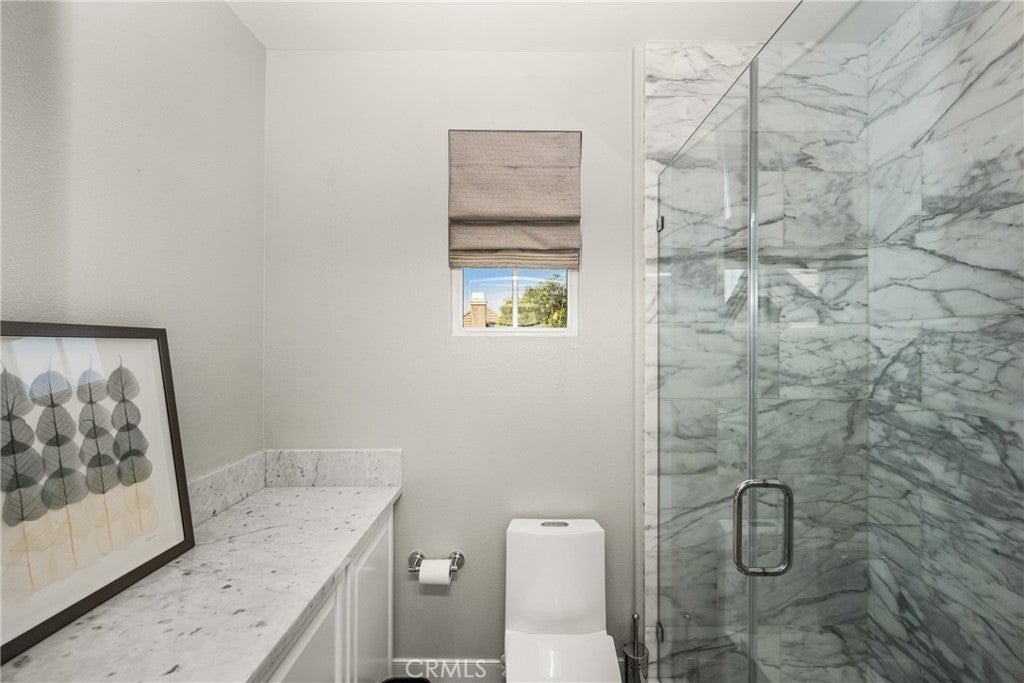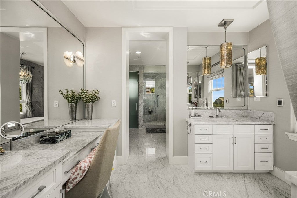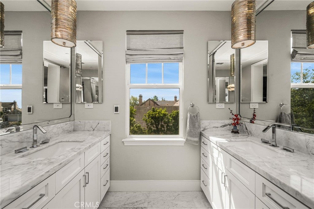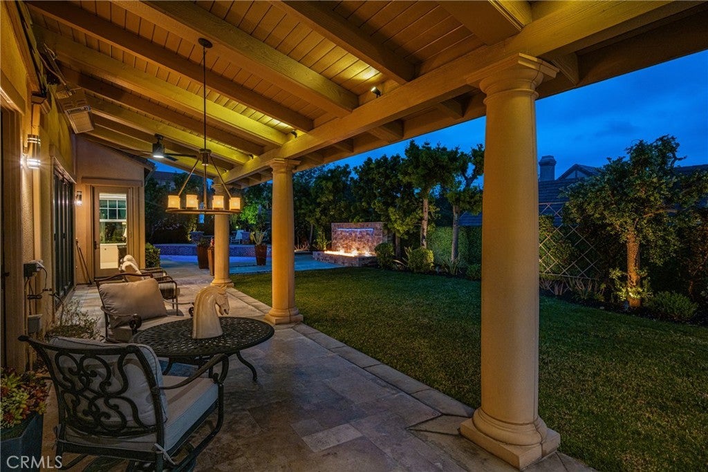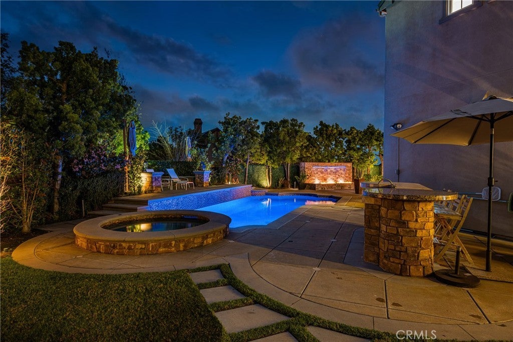 Located in the prestigious Kerrigan Ranch, this high-end masterpiece is a 4,999-square-foot "3X Model" estate situated on a rare, flat 18,121-square-foot lot with over $800,000 in recent luxury upgrades. The property commands attention with its impressive street frontage and an expansive driveway offering tons of parking, complemented by custom iron gates providing potential RV parking. Every inch of the interior is defined by high-end finishes, from the polished travertine floors to a culinary kitchen with an expanded marble island and a remodeled dining room anchored by stunning backlit transparent marble. Designed for the ultimate indoor-outdoor lifestyle, the estate features four black accordion folding glass doors that transition seamlessly to a remodeled central courtyard, a resort-style backyard, and a lush garden. One of these signature doors opens to an approximately 240-square-foot remodeled pool house, which features a convenient half-bathroom. The outdoor oasis is completed by a sparkling pool, a dedicated bar with a sink, and a back patio equipped with heaters and fans for year-round comfort. This estate is as efficient as it is elegant, featuring 50 paid-off solar panels, an electric vehicle charger, and a sanctuary-like primary suite with breathtaking Catalina Island views, all within the award-winning Yorba Linda High School boundaries.