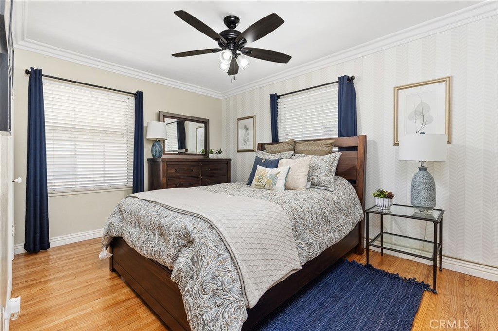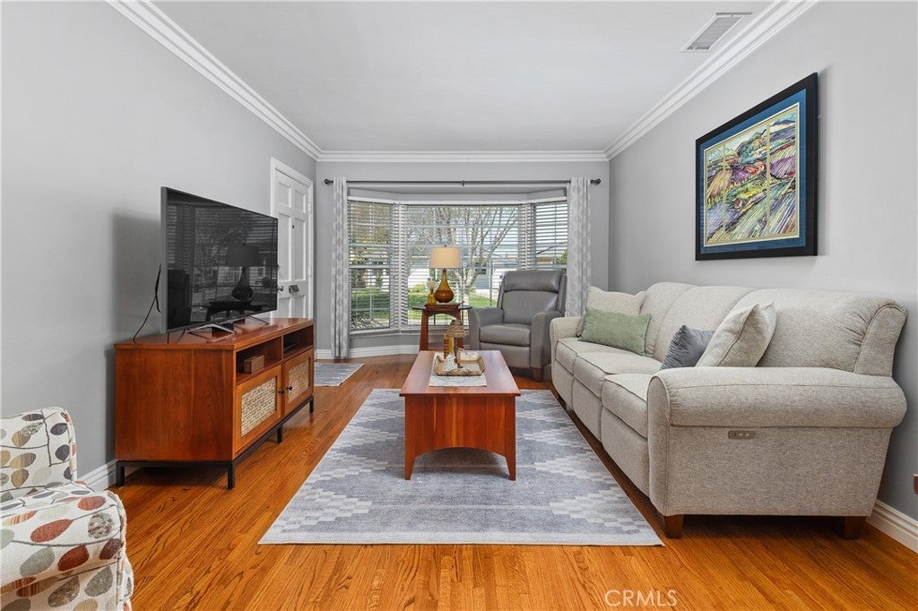 Model-perfect Lakewood home with beautiful curb appeal! A charming paver stone walkway leads to the inviting front porch overlooking the front yard. The light-filled living room features a large bay window and flows seamlessly into the dining area and updated kitchen, creating a warm and functional layout. The chef’s dream kitchen offers abundant cabinetry and counter space, a Thermador range, and stainless steel appliances—perfect for both everyday living and entertaining. A convenient service porch includes laundry and a utility sink. The spacious primary suite features a beautifully updated bathroom, while two additional bedrooms are nicely sized. The home also features a tastefully renovated hall bathroom, offering both style and functionality. This home is loaded with upgrades, including refinished hardwood floors, central heating and air conditioning, dual-pane windows, ceiling fans, crown molding, a newer roof (2024), rain gutters, and an automatic sprinkler system. Enjoy the park-like backyard with a paver stone patio and Alumawood patio cover—ideal for outdoor living. The property also features a 2-car detached garage and a long driveway with potential RV parking. Fantastic location close to parks, schools, shopping, and freeways. A must-see!