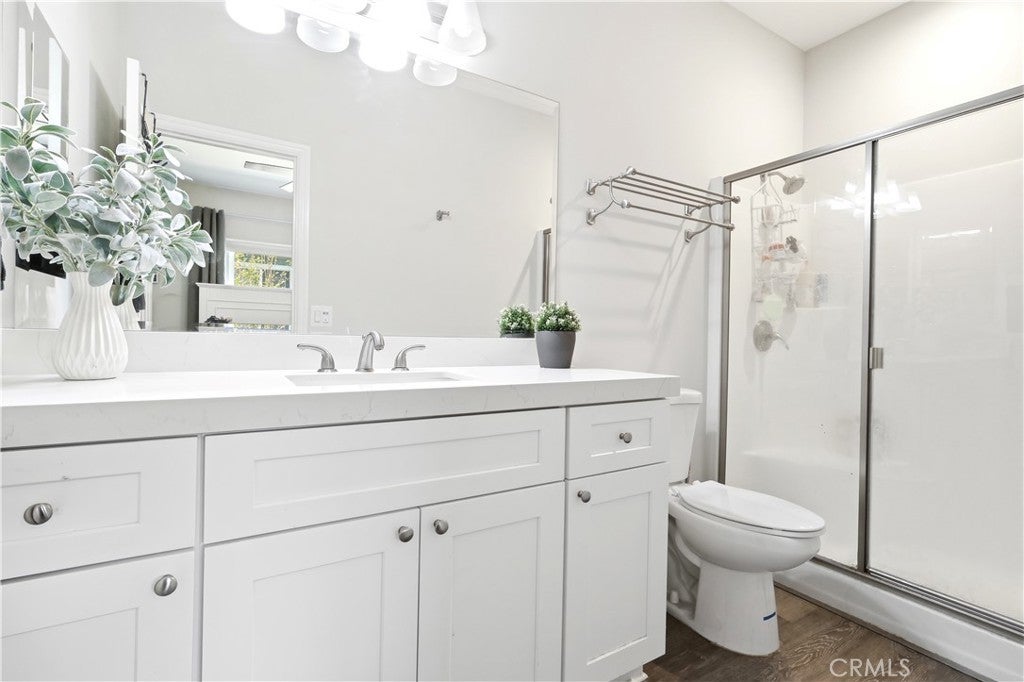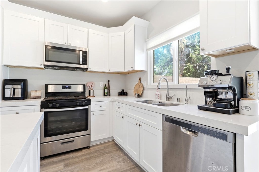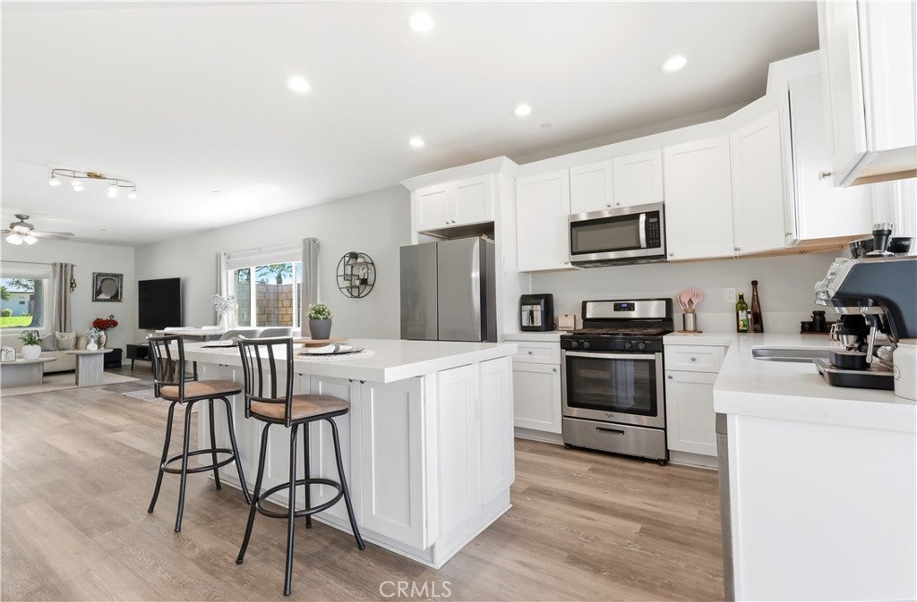 Newly built in 2022, this exceptional residence offers modern convenience and comfort with a Tesla 240V charger, a spacious driveway, and a pet-friendly setting complemented by a generous backyard featuring a gazebo- perfect for hosting guests, entertaining, or enjoying everyday gatherings. This single-story residence features 9-foot ceilings, exquisite vinyl flooring, energy-efficient UV-blocking windows throughout to help reduce heat, a newly installed vinyl fence/gate, a tankless water heater, and a dedicated laundry room with ample cabinetry and an additional pantry providing exceptional convenience and storage. At the heart of the kitchen, an impressive 8-foot quartz island with built-in cabinetry and integrated outlets takes center stage, paired with stainless steel appliances, soft-close drawers, and recessed lighting giving off a modern appeal. All three bedrooms mirror each other with modern ceiling fans, while the primary suite stands out by offering a walk-in closet and a walk-in shower, with the secondary bathroom providing the comfort of a full bath with a tub. Just a stone throws away from the 91 Freeway, Galleria at Tyler, gas stations, banks, and everyday essentials, this newer residence offers modern design paired with exceptional accessibility to daily conveniences.