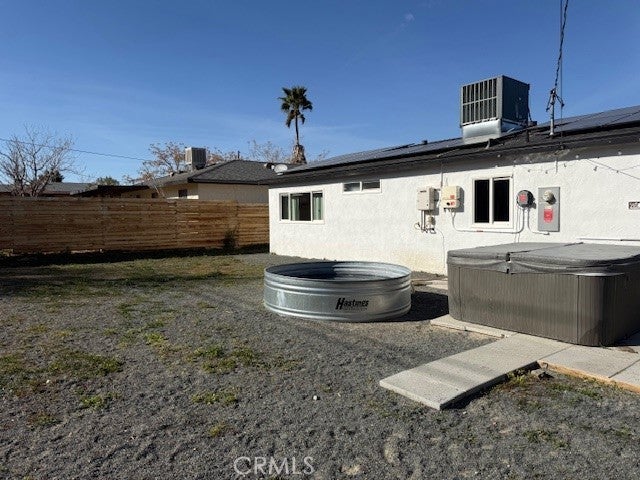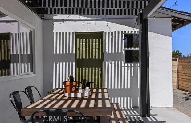 Enjoy this serene desert retreat. A thoughtfully reimagined three-bedroom, two-bath desert retreat ideally situated in Joshua Tree Village. Recently remodeled, the home blends curated comfort with everyday convenience, located just minutes from the entrance to Joshua Tree National Park. Inside, the residence offers a warm and inviting living area complemented by a contemporary kitchen designed for both functionality and style. Outdoors, the layered backyard creates a private oasis, complete with a hot tub, cowboy pool, hammock, and a dedicated pergola-covered dining patio, perfect for enjoying the tranquil desert setting under open skies. The property features a fully fenced yard and a highly walkable neighborhood with easy access to local restaurants, boutique shops, and the popular Saturday farmer’s market. The attached two-car garage has been partially converted into a flexible yoga and fitness space, ideal for wellness-focused living. Offered as a turnkey opportunity, the home may be delivered with furnishings included, making it well-suited as a primary residence, vacation getaway, or income-producing investment. The property is currently operating as a successful Airbnb, with a transferable license available. Recent upgrades—including a newer electrical panel, solar lease, EV charger, and central HVAC enhance both efficiency and long-term comfort. This is a rare opportunity to own a serene and income-generating retreat in one of Southern California’s most desirable desert communities.