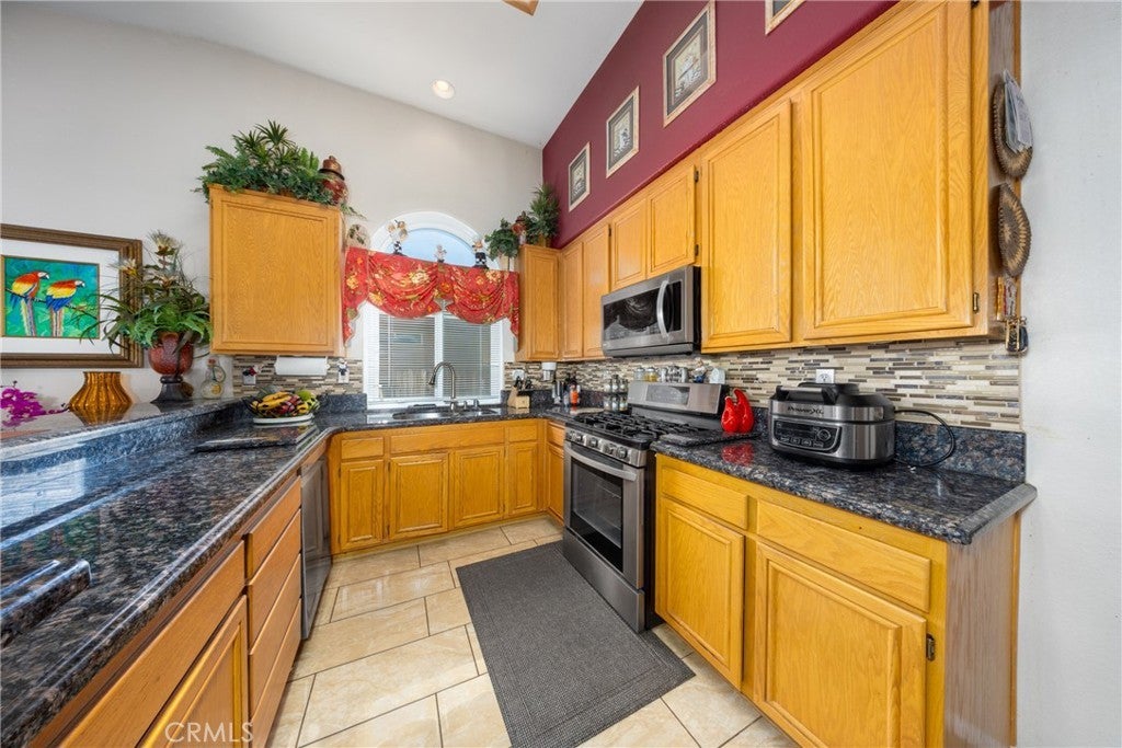 Welcome to this beautifully maintained single-story 3 bedroom, 2 bath home (Plus bonus rooms). Ideally situated in a quiet neighborhood at the end of a cul-de-sac. This home showcases true pride of ownership with manicured landscaping and thoughtful care throughout. Step inside to an inviting open layout featuring high ceilings and a seamless flow between the formal living and dining areas. The heart of the home is the kitchen, complete with stainless steel appliances, abundant cabinetry, granite countertops and a center island with seating all overlooking the cozy family room with a fireplace for relaxing evenings. Large sliding glass doors create a beautiful indoor-outdoor connection, leading to a lush, private backyard with a covered patio, outdoor fans and artificial turf with low maintenance, perfectly designed for hosting gatherings, summer barbecues or simply enjoying a peaceful evening at home. All bedrooms are located on the main level and the 3 bonus rooms offer endless flexibility. These extra rooms can be used as guest rooms, a gym, a home office, a man-cave or even a sewing/craft room. Use your imagination. Additional highlights include an inside laundry and a 3 car garage with ample storage. Homes like this, combining space, versatility, and location are hard to find. Schedule an appointment for a private showing before it's gone! Make it yours TODAY!