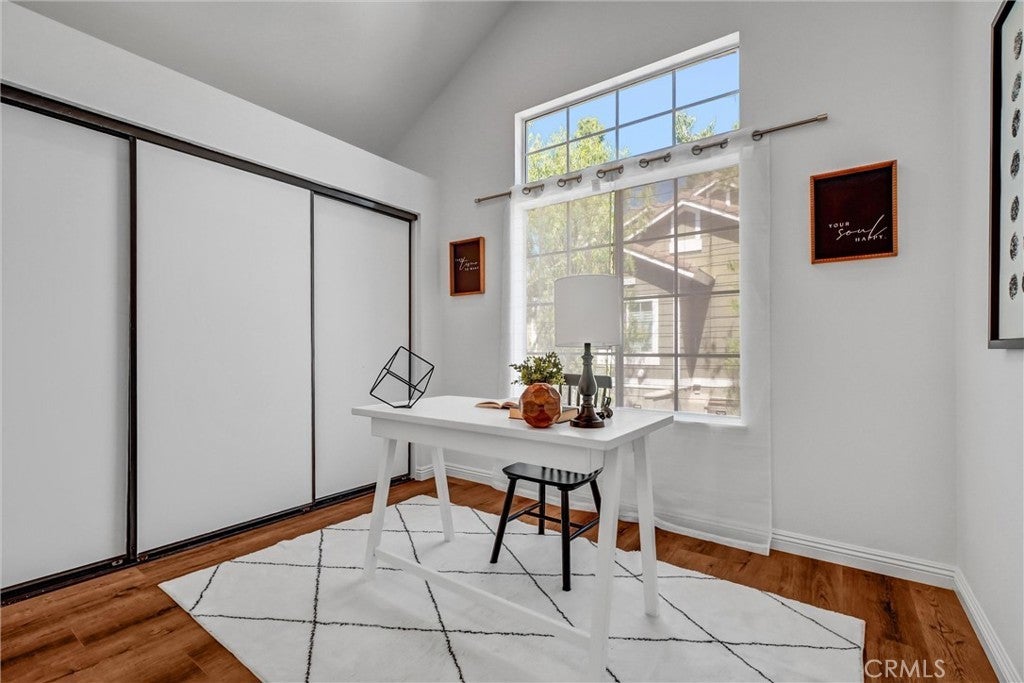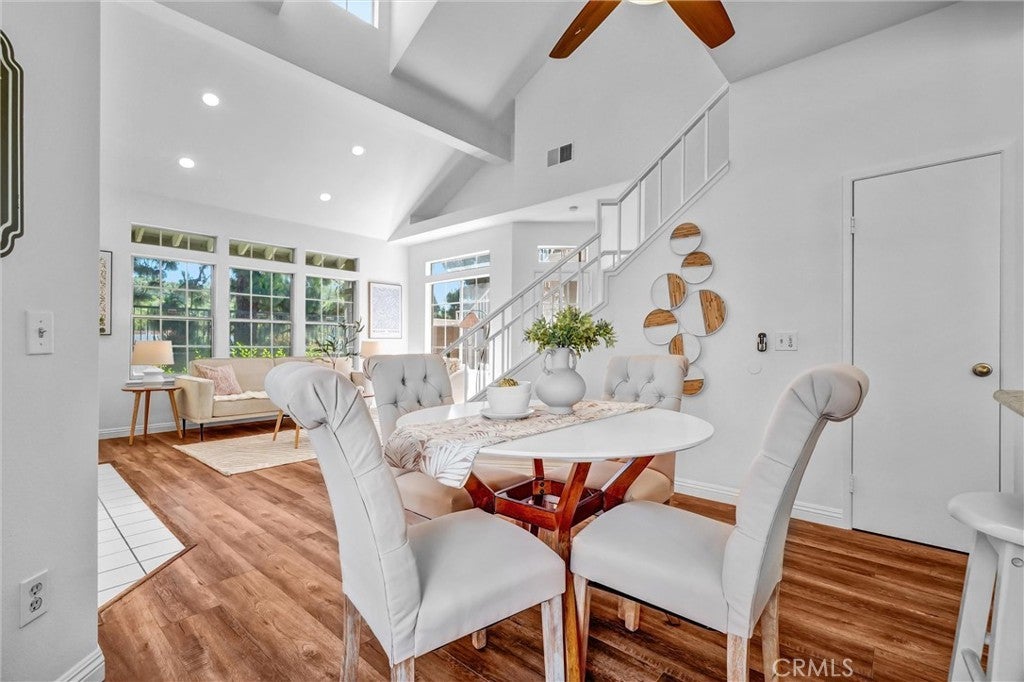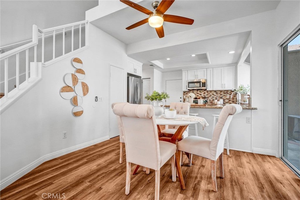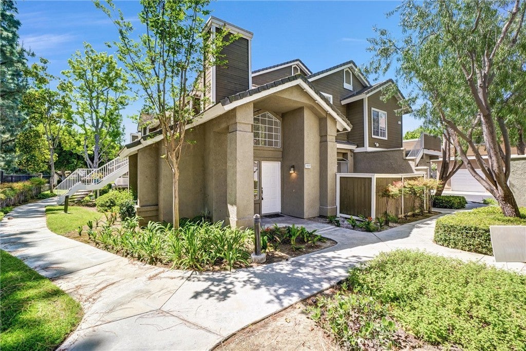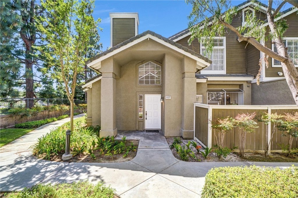 SIMPLY CHARMING! Step into a bright, inviting space where light, comfort, and style come together in perfect harmony. Located at the back of a quiet, beautifully maintained community and attached on only one side, this home offers privacy, serenity, and an unbeatable location. This two-story gem features three bedrooms and two bathrooms with dramatic cathedral ceilings and a thoughtfully designed open floor plan ideal for entertaining or everyday living. The cozy living room with fireplace flows effortlessly into the dining area, creating a warm, welcoming atmosphere for family and friends. The chef’s kitchen dazzles with granite countertops, tile backsplash, white cabinets, stainless steel and black appliances, trey ceiling, walk-in pantry and solarium windows that flood the space with light. The main-floor bedroom offers a private bath and closet with serene views of the fenced back patio and mature trees. Upstairs, the elegant master suite features vaulted ceilings, a full bathtub, a spacious walk-in closet, and views of mature trees that create a tranquil retreat. Throughout, you’ll find beautiful SPC vinyl flooring, scraped ceilings, recessed lighting, a ceiling fan, freshly painted walls, and convenient downstairs laundry. Enjoy two fully fenced patios, perfect for morning coffee, outdoor entertaining, or simply relaxing in peace. Direct access to the two-car garage and guest parking adds ease and convenience. Central air and heat ensure year-round comfort. Residents also enjoy community amenities including a pool and spa. Ideally located near Los Coyotes Country Club, Westridge Golf Course, Westridge Plaza, La Habra Marketplace, and all shopping, dining, and transportation options. This home is simply charming, full of light, warmth, and style, and ready to wow its next owners!