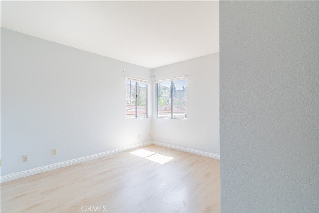 Conveniently located just 2 miles from Cal Poly Pomona with easy access to the 57 freeway, this home sits in a clean, quiet community. It offers two bedrooms, each with its own full bathroom, and no upstairs neighbors. The primary bedroom features a private balcony and walk-in closet, with mountain views throughout the unit. The open kitchen includes all appliances and flows into a living area with hardwood flooring. An in-unit laundry room with washer and dryer adds convenience, along with central heating and AC. The home comes with two parking spaces (one covered carport and one shared garage). Community amenities include a pool, spa, recreation room, and pet-friendly green spaces, plus nearby hiking trails.
