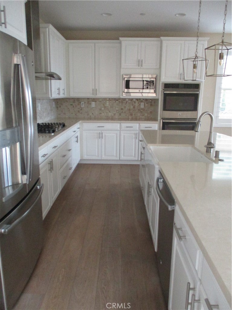 Stunning Rancho Mission Viejo home, built in 2014, located in a highly sought after community with great schools. This home has it all. Highly upgraded and open concept floor plan featuring European white washed oak floors throughout carpeted stairs, high end quality custom color paint, quartz countertops, upgraded cabinetry, luxury stainless steel appliances, full size washer, and full-sized steam dryer, side by side refrigerator, recessed lighting throughout, energy efficient windows, high ceilings, a covered deck, and a covered balcony with unobstructed views of Rancho Mission Viejo, custom Dakota exterior stone work a large backyard, beautiful curb appeal, and so much more. HOA amenities include multiple pools, spas, waders and splash play facilities, fitness centers, trails, parks, sports fields, pickle & bocce ball courts, community farms, and much more. Do not disturb occupants. Cat or dog allowed subject to breed & age, total number of pets allowed in home is 2. Call for more details. Applications selected on criteria only and first come first serve.