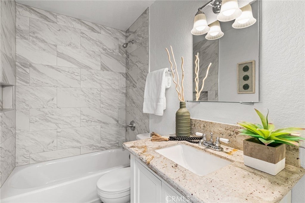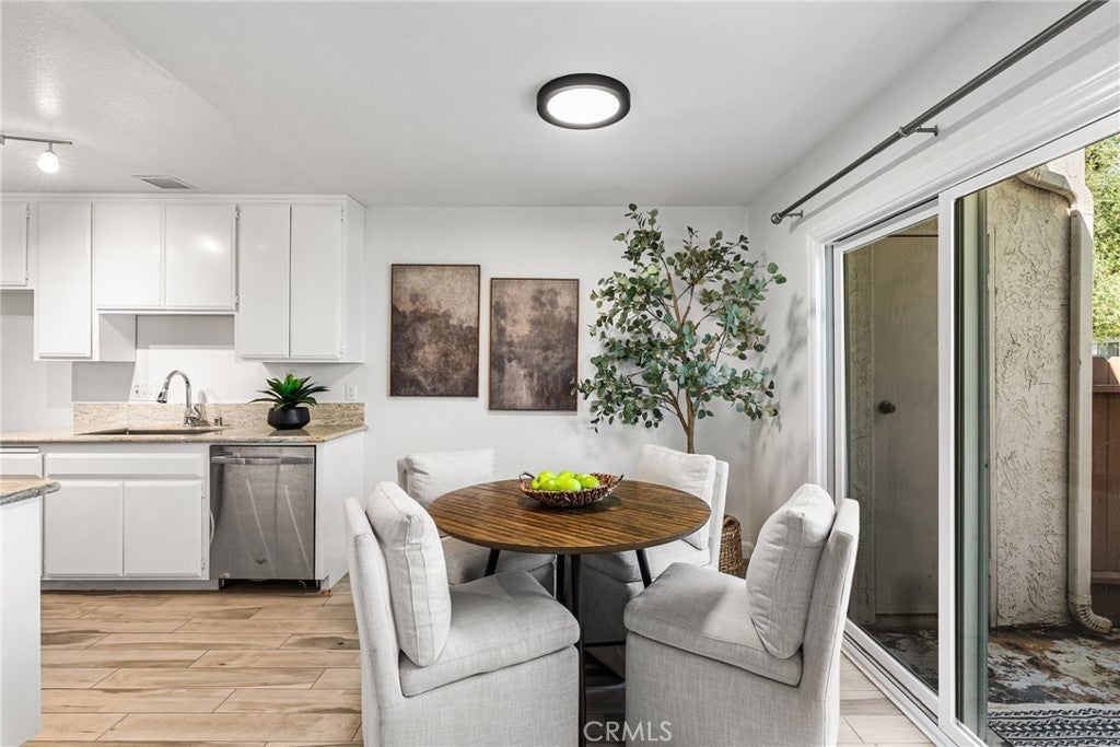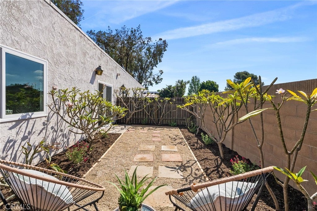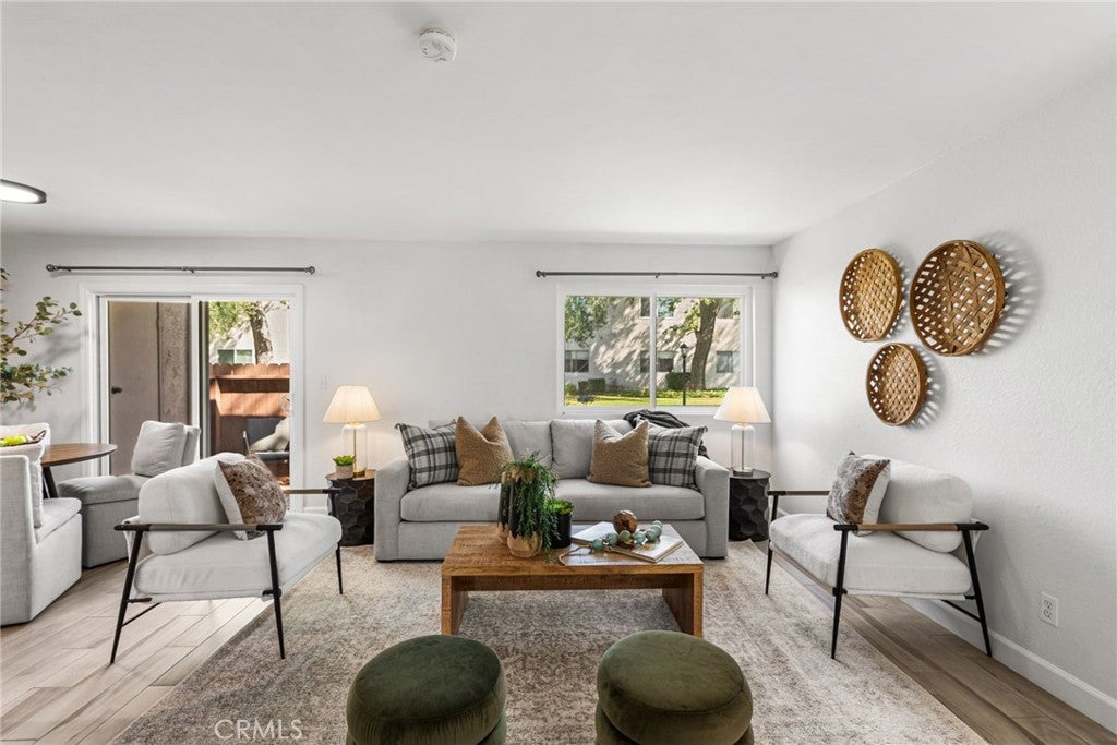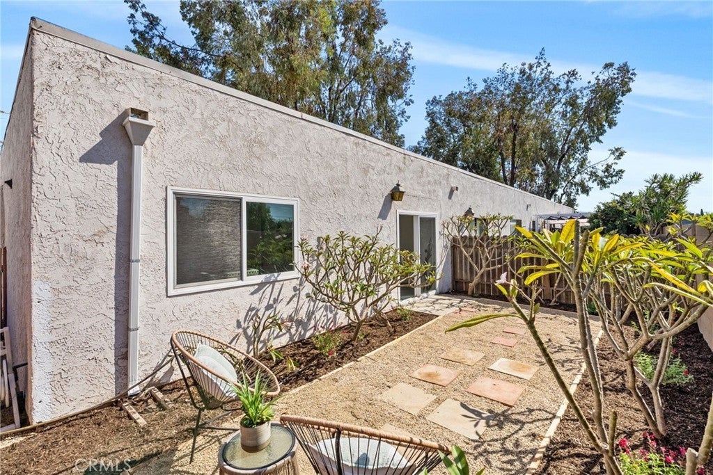 Rarely available, this single-story, ground-level cottage-style unit offers a private patio and the added privacy of no upstairs neighbor—an exceptional opportunity within the Quail Meadows community. Tucked away in a quiet, private location at the back of the community, this charming condo blends comfort, style, and easy living. Featuring 2 bedrooms, 2 bathrooms, and nearly 1,000 square feet of thoughtfully designed space, the home enjoys a peaceful greenbelt setting right out front—bringing a sense of calm to your everyday life. Step inside to fresh interior paint and porcelain tile flooring throughout, creating a light, cohesive feel. The inviting living area features a cozy wood-burning fireplace—perfect for relaxing evenings at home. The kitchen has been tastefully refreshed with granite countertops, a deep sink, freshly painted cabinetry, and stainless steel appliances, making it as functional as it is welcoming. Additional upgrades include a new HVAC system and new double-paned windows and doors for year-round comfort. You’ll also appreciate customized closets in both bedrooms. The bathrooms have been updated with modern vanities, fixtures, lighting, and a beautifully tiled shower, giving the home a clean, move-in-ready feel. Enjoy the convenience of one assigned parking space, along with ample guest parking. The home is ideally located close to the tennis courts within the Quail Meadows community, where residents enjoy resort-style amenities including a pool, spa, and clubhouse. HOA covers water and trash, and there are no Mello-Roos. With popular dining, shopping, fitness, and more just steps away—you’ll love how connected and convenient this location truly is. This is easy, everyday living with a little extra charm!