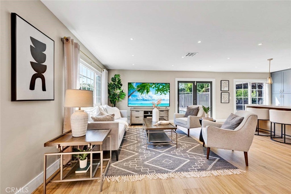 Welcome to 17522 Orange Tree Lane, a Beautifully Remodeled Home Nestled on an Interior Lot in the Heart of Tustin. Thoughtfully Upgraded Throughout, this Home Showcases an Open Floor Plan with Four Bedrooms, Three and a Half Bathrooms, Owned Solar, and an Abundance of Natural Light. Custom Upgrades Include New Interior Paint, New Wide-Plank Luxury Vinyl Flooring, New Custom Closets with Built-Ins, New Fencing, Updated Landscape Lighting, and More. The Spacious Living Room (Currently Used as an Office) Features a Cozy Fireplace and Backyard Access. The Family Room is Open to the Dining Area and Kitchen, with Accordion Glass Doors to the Backyard, Ideal for Everyday Living and Entertaining. The Kitchen is the Heart of the Home, Featuring a 13-Foot Island with Waterfall Edge, Quartzite Counters, Tile Backsplash, Farmhouse Sink, Wine Fridge, Open Shelving, and High-End Appliances. The Primary Suite Includes Dual Mirrored Closets and an En-Suite Bathroom with Dual Vanities and Walk-In Shower. The Private Backyard is Thoughtfully Designed, Featuring a Gated PebbleTec Pool and Spa with Baja Shelf, Oversized Pergola, Large Paver Patio, Turf, Outdoor Kitchen with Built-In BBQ, Mini Fridge, and Bar Seating, along with Speakers, Garden, Fruit Trees (Lemon and Kumquat), and Updated Lighting. Direct Access Three-Car Garage with EV Charger, Epoxy Floors, Built-In Cabinets, and Large Attic Space. Indoor Laundry Room, Built-Ins, and Access to the Pool Bath. Located in the Award-Winning Tustin Unified School District, with Easy Access to the 5/55/22 Freeways, as well as Old Town Tustin’s Shopping, Dining, and Entertainment. 17522 Orange Tree Lane is a Must-See!