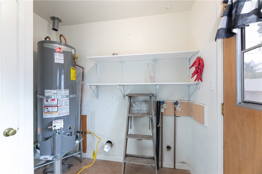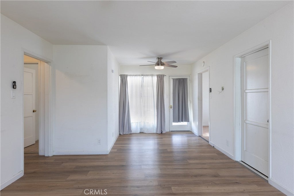 This home welcomes you with great curb appeal and thoughtfully designed, low-water landscaping for easy maintenance. A spacious driveway extends to the backyard, offering ample parking and versatility. Step inside to a comfortable family room featuring attractive laminate flooring, creating a warm and inviting space to relax or gather. The home is equipped with a mini-split system providing efficient A/C and heat for year-round comfort. The bathroom offers a generously sized walk-in shower with a clean, modern feel. The kitchen is conveniently positioned with direct access to the backyard, making indoor-outdoor living and entertaining effortless. Adjacent to the kitchen is a dedicated laundry area for added convenience. The living room also provides direct access to the one-car garage. The expansive backyard offers incredible potential, whether you envision adding a pool, building a two-car garage, or creating an ADU, the space is there to bring your vision to life.