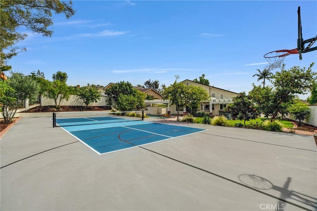 Set on an expansive over half-acre view lot, this exceptional East Lake Village residence offers a rare blend of privacy, space, and resort-inspired living — highlighted by a private pickleball and basketball court, an incredibly unique amenity rarely found in Yorba Linda. The backyard is designed for unforgettable entertaining and everyday enjoyment, featuring a beautifully reimagined pool and spa with a striking rock waterfall and slide, all set against scenic views that create a true private retreat. Inside, a comprehensive renovation has transformed the home with refined, modern finishes throughout. The thoughtfully designed floor plan offers 4 bedrooms and 3 bathrooms, enhanced by new luxury flooring, updated stair railings, recessed lighting, and a completely redesigned gourmet kitchen ideal for both casual living and entertaining. The primary suite serves as a peaceful escape, showcasing a stunning new bath and a bedroom positioned to capture picturesque views. Additional features include a 3-car attached garage with epoxy flooring and a move-in-ready presentation that allows immediate enjoyment of this exceptional property. Designed for gathering, entertaining, and creating lasting memories, this is truly the home everyone will want to visit. Residents of East Lake Village enjoy scenic lake paths, a fitness center, sport courts, and a variety of year-round community activities.