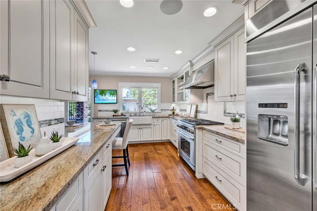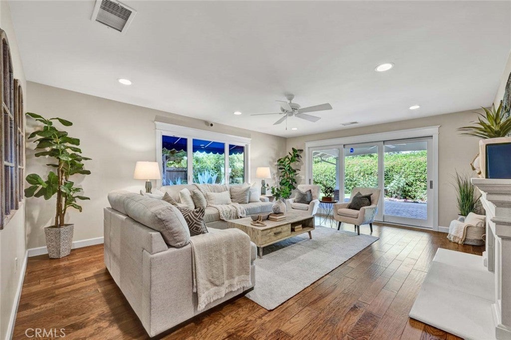 Welcome to 14321 Wisteria Lane, a Single-Level Dream Home Ideally Situated on a Cul-De-Sac in the Highly Desirable 55+ Enderle Gardens Community of Tustin. Fully Remodeled in 2016, This Beautifully Updated Residence Offers Two Bedrooms, Two Bathrooms, an Office Nook, and an Expansive Yard Designed for Comfortable Living. Thoughtfully Upgraded Throughout, the Home Features Engineered Hardwood Flooring, Custom Molding, Recessed Lighting, an Updated Electrical Panel, Updated Piping, Newer Windows and Doors, and More. The Spacious Family Room Centers Around a Cozy Fireplace and Opens Seamlessly to the Backyard California Room Through Bi-Fold Doors, Creating the Perfect Indoor-Outdoor Living Experience. The Well-Appointed Kitchen Showcases Granite Countertops, Custom Soft-Close Cabinetry with Pull-Out Drawers, Peninsula Seating, a Farmhouse Sink, Dacor Stainless Steel Appliances, Built-In Refrigerator, Walk-In Pantry, and Dual Access Points To The Backyard. The Private Primary Suite Offers a Walk-In Closet with Custom Built-Ins and an En-Suite Bathroom Complete With a Walk-In Shower. The Spacious Backyard Features a Gated Courtyard, California Room with a Vaulted Ceiling and Ceiling Fan, Large Grass Area, Finished Shed with Epoxy Flooring, Updated Hardscape, Lush Landscaping, and Multiple Seating Areas. Additional Highlights Include an Indoor Laundry Room with Storage and a Direct-Access Two-Car Garage Equipped with Built-In Cabinets, Attic Storage, and an Epoxy Floor. Enderle Gardens Residents Enjoy Beautifully Maintained Greenbelts, Walking Paths, and a Charming Fountain with Seating. Conveniently Located Near the 5, 55, and 22 Freeways, and Just Minutes from Old Town Tustin’s Shopping, Dining, and Entertainment. 14321 Wisteria Lane is a Must-See.
