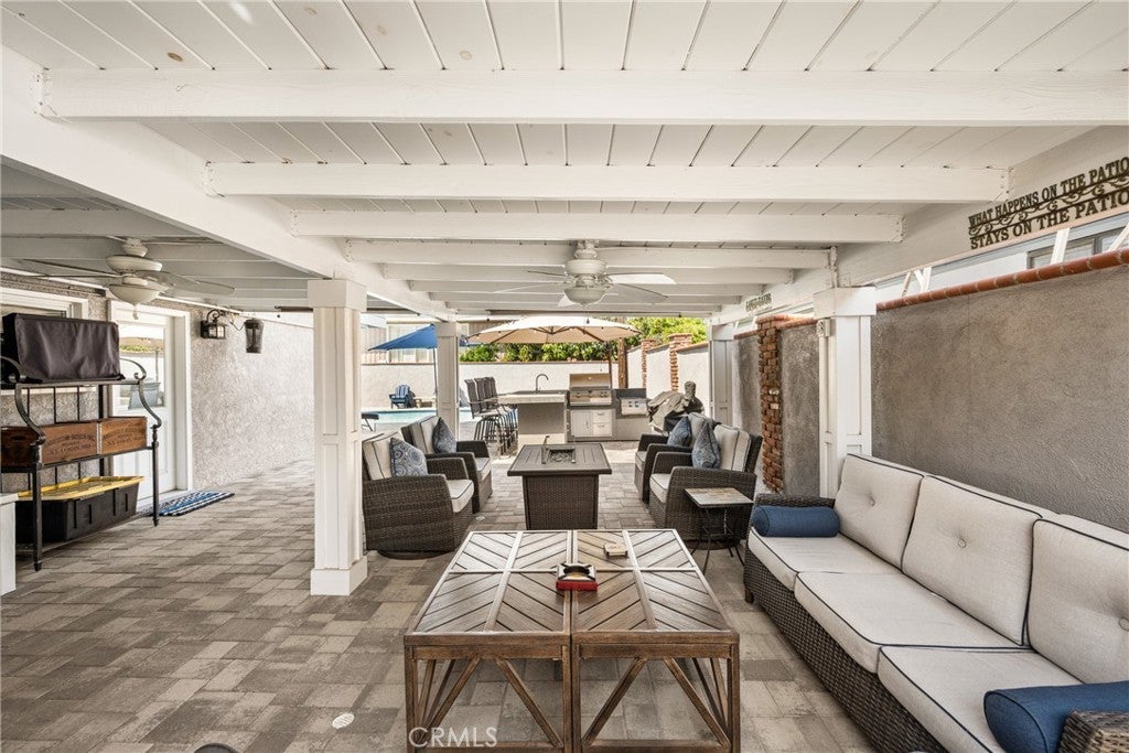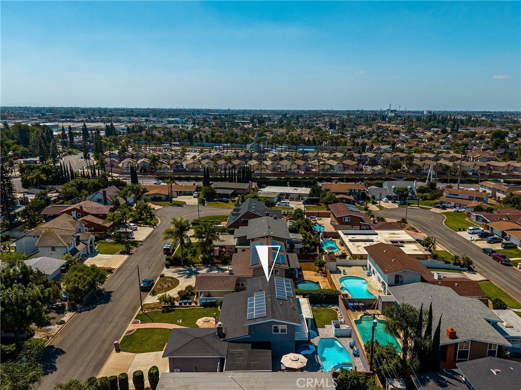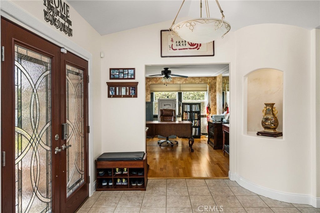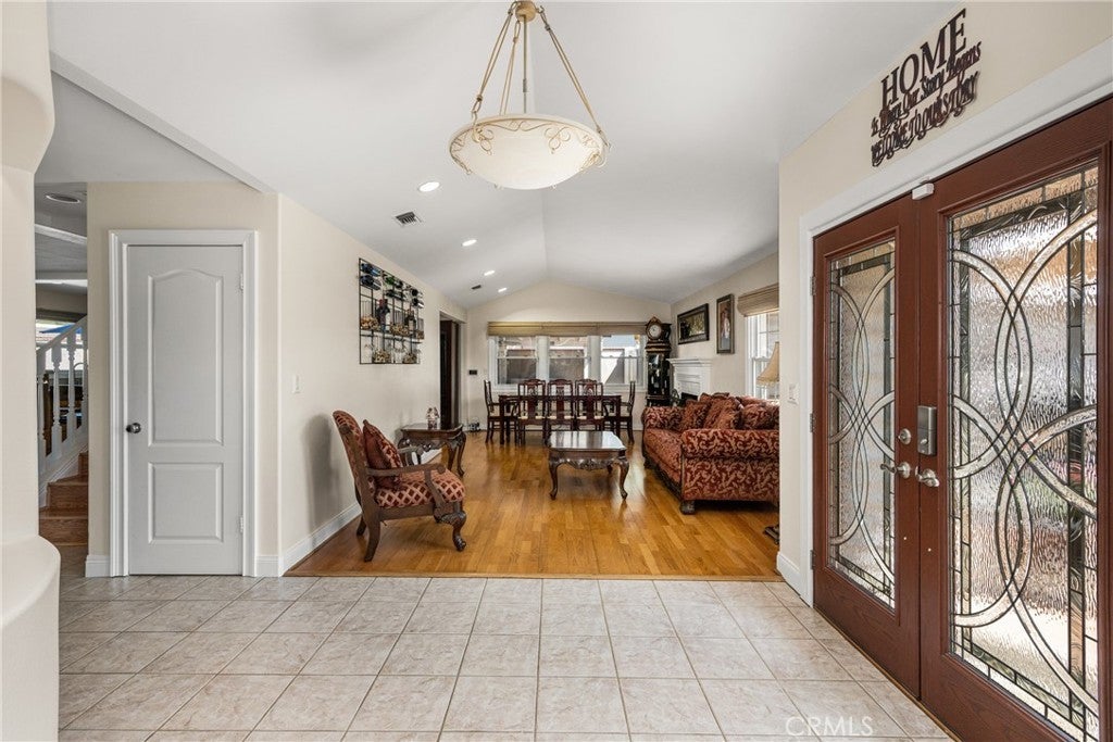 Nestled in the prestigious Los Coyotes Country Club community, this beautifully upgraded home offers nearly 2,600 square feet of well-designed living space with 4 bedrooms and 3 bathrooms. One bedroom located downstairs is currently configured as a home office and can easily be converted back with the addition of a closet. Step through the double-door entry into a warm and inviting interior featuring tile flooring and rich wood floors on the main level, with wood laminate flooring upstairs. The spacious kitchen is designed for both functionality and style, showcasing wood cabinetry, tile countertops, a center island, a large pantry, and newer stainless steel appliances, including a five-burner cooktop. The dining room features a charming wood-burning fireplace and is situated adjacent to the formal living room, perfect for gatherings, while the separate family room offers surround sound for an enhanced entertainment experience. Upstairs, the primary suite provides a relaxing retreat with a private deck and a beautifully appointed bathroom complete with a jetted tub, separate shower, and pedestal sink. A conveniently located upstairs laundry room adds everyday ease. Additional highlights include dual-pane windows, a permitted sunroom, newer HVAC system, upgraded electrical panel, whole-house water filtration system, and fresh interior and exterior paint. The outdoor space is truly exceptional. Recently remodeled front and backyard areas showcase a stunning pool and spa renovation completed just two years ago, featuring elegant brick pavers and a private covered patio. The backyard is an entertainer’s dream with a fully equipped barbecue island including a built-in grill, side burner, sink, and refrigerator. For added convenience, the property offers RV parking with 50-amp service and a solar system with a low monthly lease that will be paid off in just a few years—helping to significantly reduce energy costs. This is a rare opportunity to own a thoughtfully upgraded home in one of the area’s most sought-after communities.