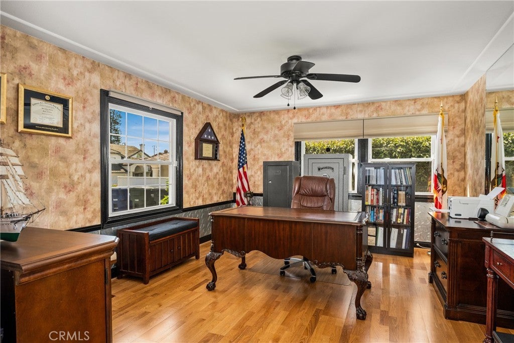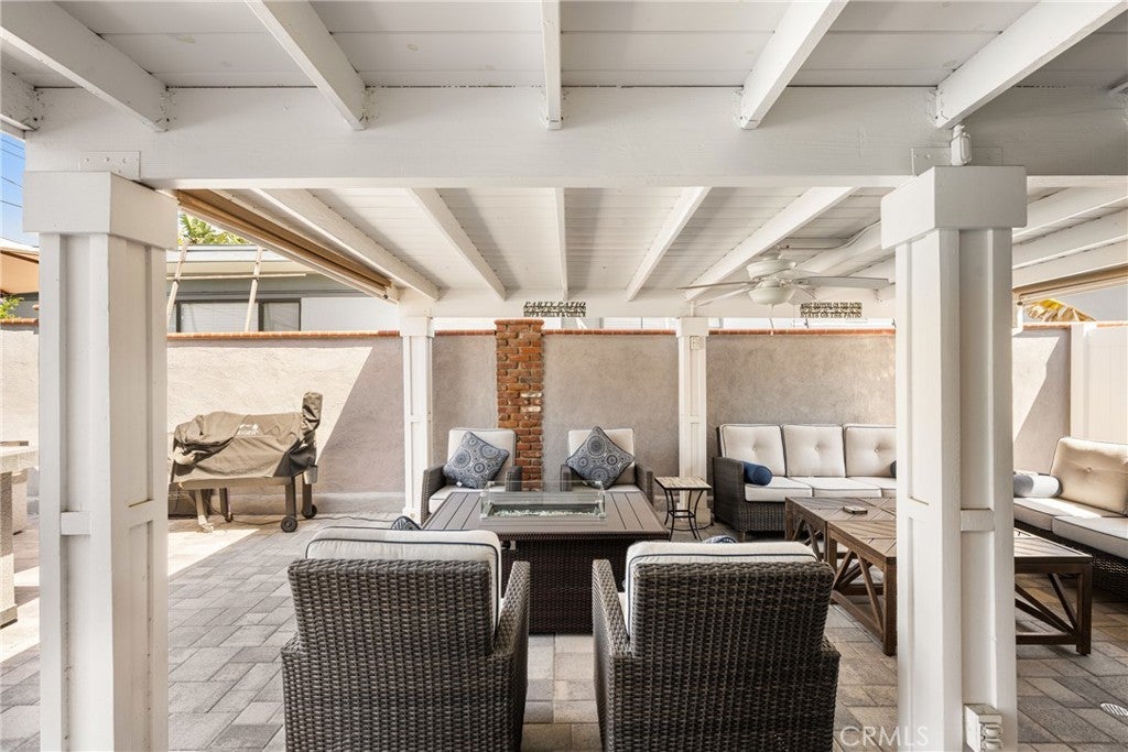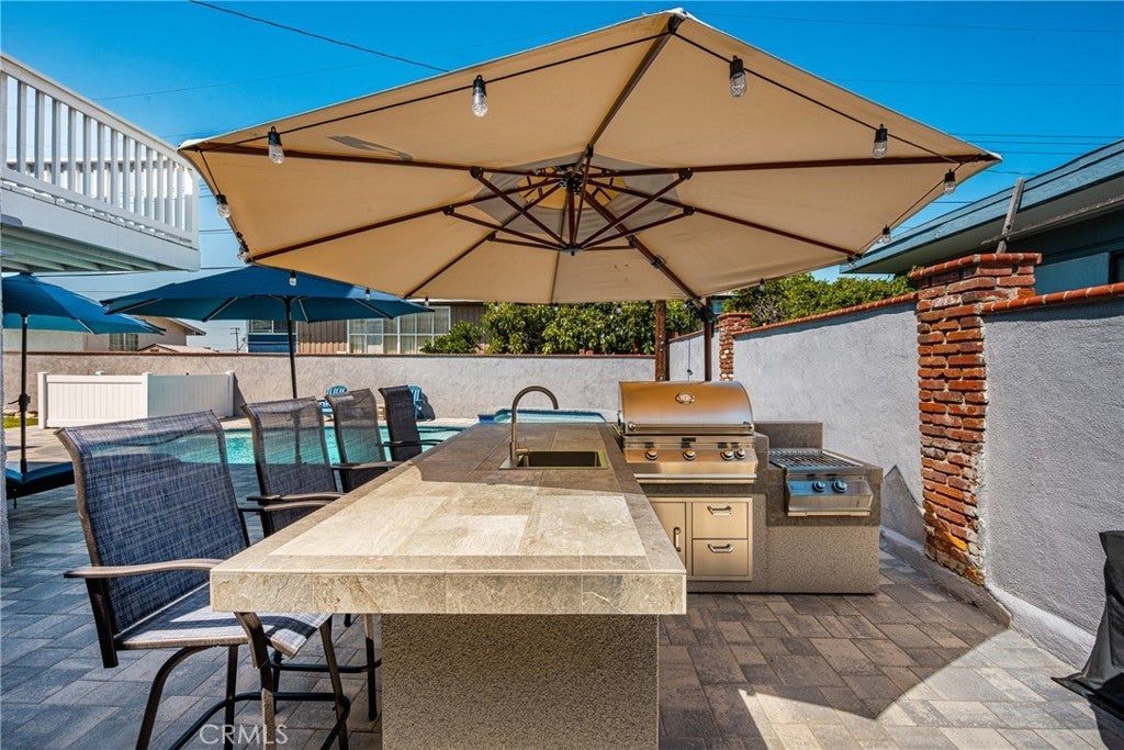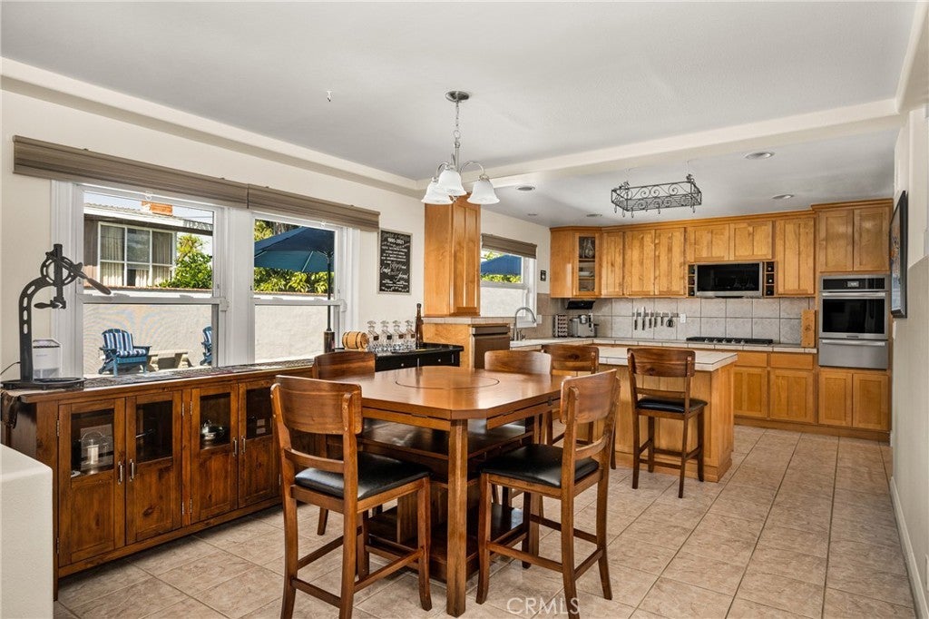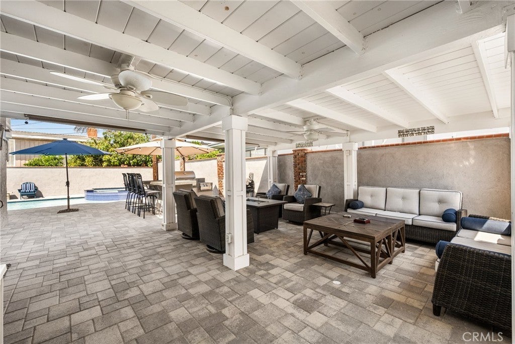 Nestled in the prestigious Los Coyotes Country Club community, this beautifully upgraded home offers nearly 2,600 square feet of well-designed living space with 4 bedrooms and 3 bathrooms. One bedroom located downstairs is currently configured as a home office and can easily be converted back with the addition of a closet. Step through the double-door entry into a warm and inviting interior featuring tile flooring and rich wood floors on the main level, with wood laminate flooring upstairs. The spacious kitchen is designed for both functionality and style, showcasing wood cabinetry, tile countertops, a center island, a large pantry, and newer stainless steel appliances, including a five-burner cooktop. The dining room features a charming wood-burning fireplace and is situated adjacent to the formal living room, perfect for gatherings, while the separate family room offers surround sound for an enhanced entertainment experience. Upstairs, the primary suite provides a relaxing retreat with a private deck and a beautifully appointed bathroom complete with a jetted tub, separate shower, and pedestal sink. A conveniently located upstairs laundry room adds everyday ease. Additional highlights include dual-pane windows, a permitted sunroom, newer HVAC system, upgraded electrical panel, whole-house water filtration system, and fresh interior and exterior paint. The outdoor space is truly exceptional. Recently remodeled front and backyard areas showcase a stunning pool and spa renovation completed just two years ago, featuring elegant brick pavers and a private covered patio. The backyard is an entertainer’s dream with a fully equipped barbecue island including a built-in grill, side burner, sink, and refrigerator. For added convenience, the property offers RV parking with 50-amp service and a solar system with a low monthly lease that will be paid off in just a few years—helping to significantly reduce energy costs. This is a rare opportunity to own a thoughtfully upgraded home in one of the area’s most sought-after communities.