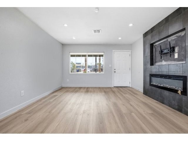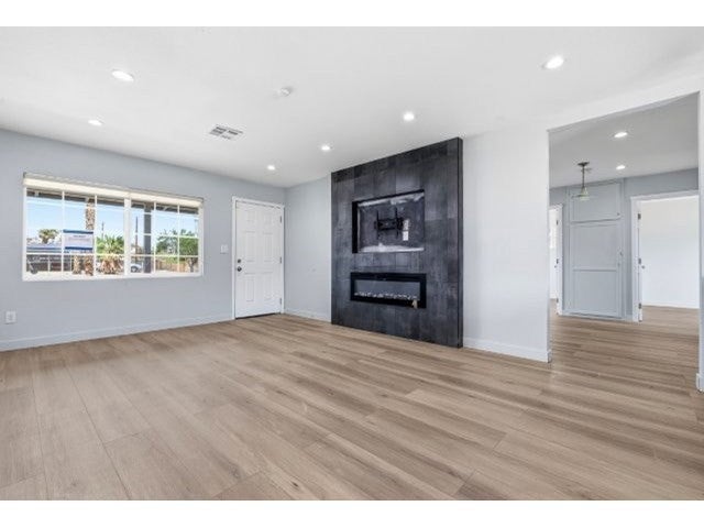 Beautifully updated 4-bedroom, 2-bathroom single-story home offering modern comfort and style throughout. The interior features light, contemporary paint and recessed lighting, creating a bright and inviting atmosphere. The living room showcases a sleek modern fireplace with a convenient TV mount, perfect for relaxing or entertaining. The kitchen is well-appointed with quartz countertops and abundant storage, providing both functionality and elegance. Spacious bedrooms offer comfort and flexibility for a variety of needs. Outside, enjoy a large enclosed backyard ideal for gatherings, pets, or quiet outdoor living. Located in Twentynine Palms, where local light ordinances allow for exceptional stargazing and the peaceful enjoyment of desert night skies.