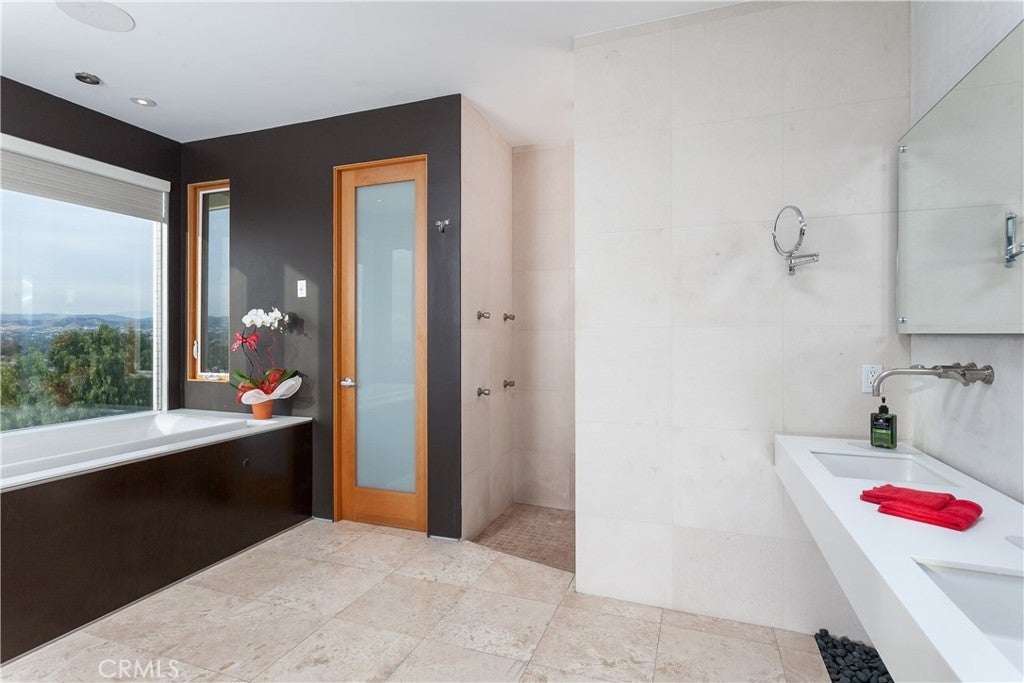 Exclusive luxury estate with breathtaking 180-degree panoramic city lights and Catalina island views. Nearly every room and terrace from this stunning contemporary redesigned home has spectacular views. The massive 14,000 + sq ft lot features an award winning resort like backyard that will surely blow you away, with the infinity edge multi-color lit Pool and SPA, endless hardscape, bar area, multiple fire pits, multiple sitting areas, and spectacular day and night views. The home has been meticulously renovated to offer an open concept with a modernized floor plan that showcases the ultimate California indoor-outdoor lifestyle. The home is adorned with Italian travertine flooring, amazing Murano glass chandelier, Miele and Sub-Zero professional grade appliances, beautifully designed custom cabinets and ample use of glass doors and windows to showcase the exquisite views from each floor. The home is intelligently designed with a main floor bedroom en-suite, open concept kitchen, media room, en-suite secondary bedrooms, and a grand master bedroom with a retreat and spa-like master bath boasting a Japanese style overflow soaking tub and viewing terrace. This one–of-a-kind home must be seen in person to appreciate the grand scale and attention to detail. Note: Pictures below show furnished property but the property is offered UNFIRNISHED. Schedule your private showing today.